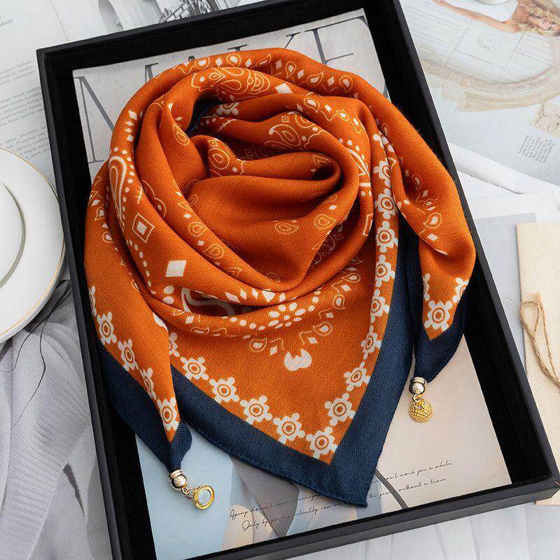高级感丝巾女小围巾女春秋季棉麻手感脖子围脖小方巾新款日系优雅