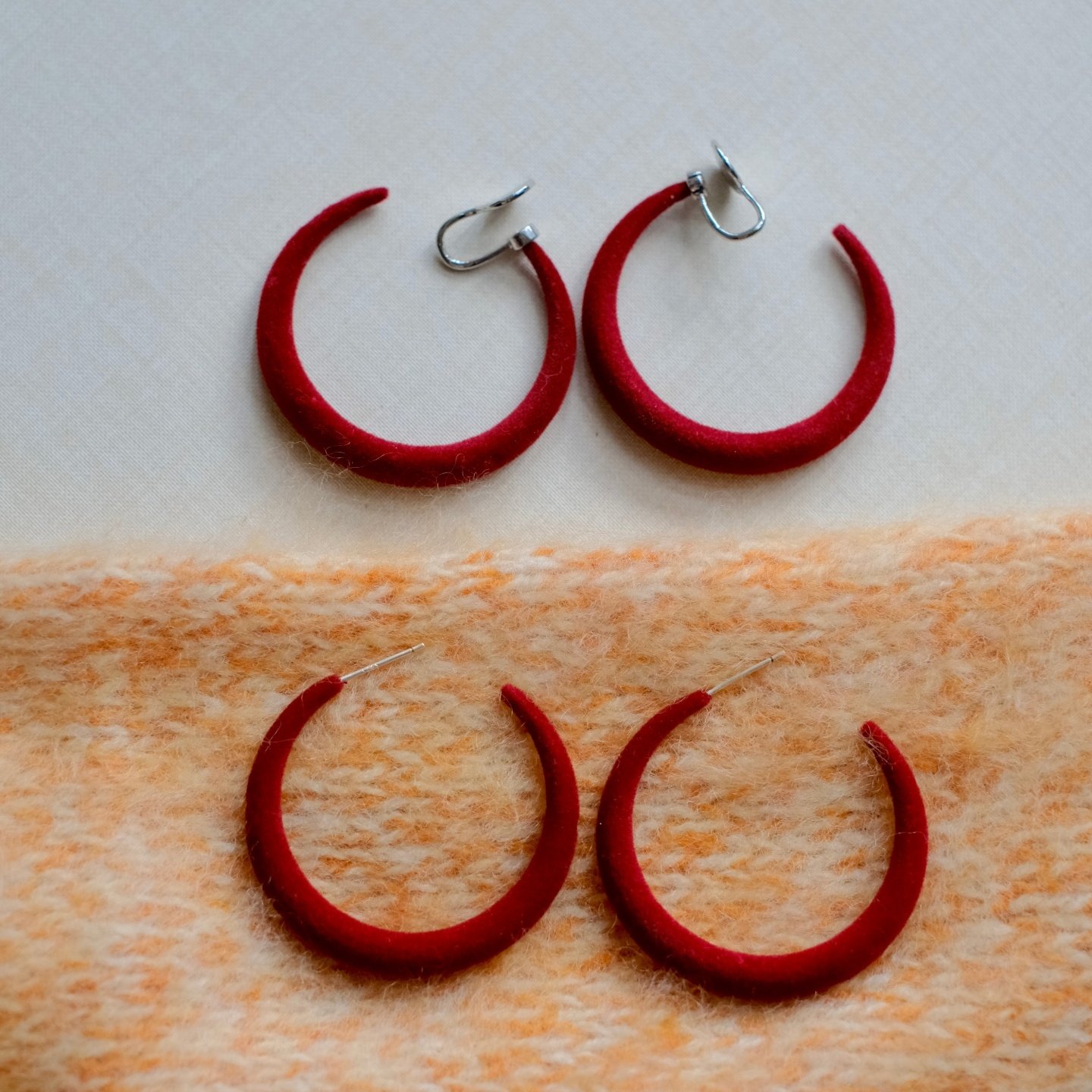 《红丝绒》复古港风秋冬安可拉酒红丝绒耳圈显白耳环耳夹耳饰新年
