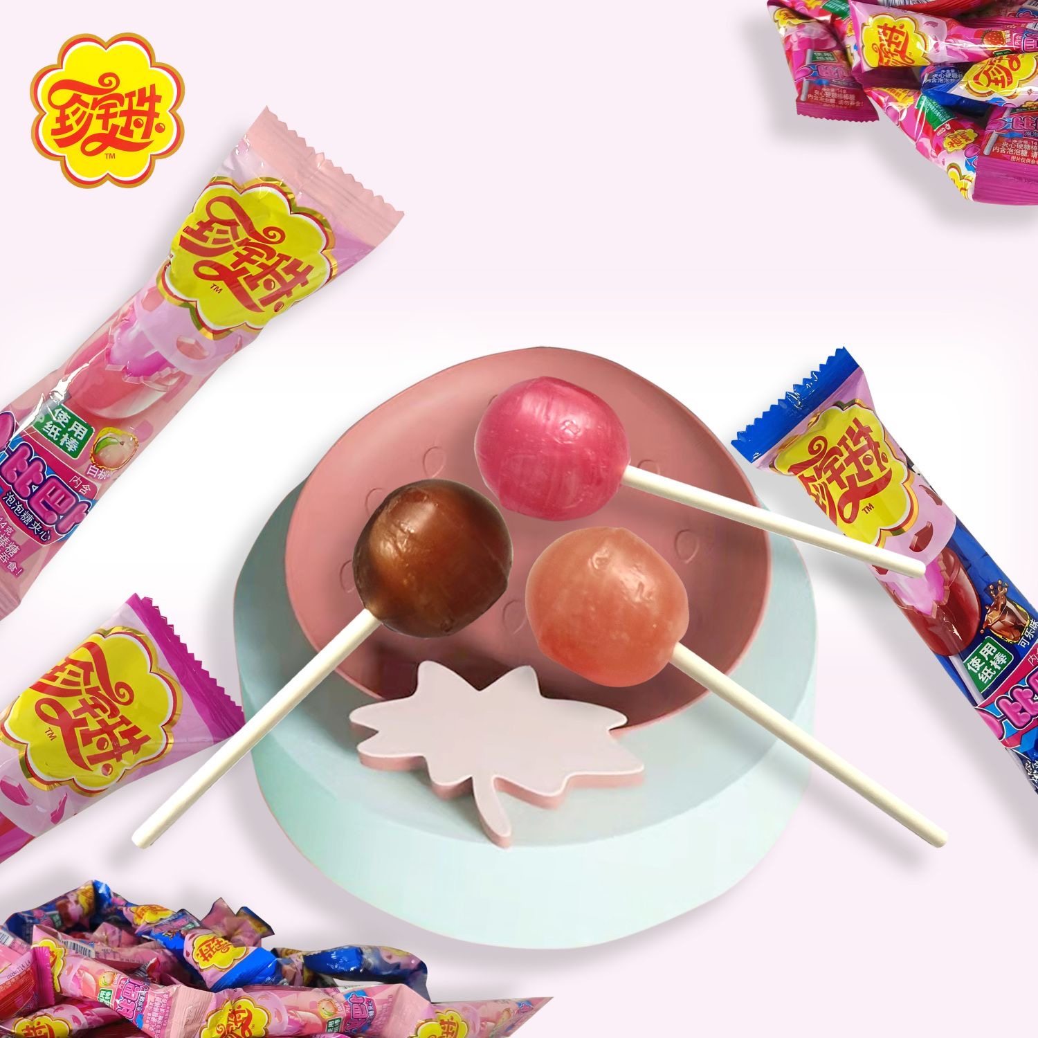 阿尔卑斯珍宝珠棒棒糖夹心泡泡糖多口味糖果零食结婚喜糖散装混合