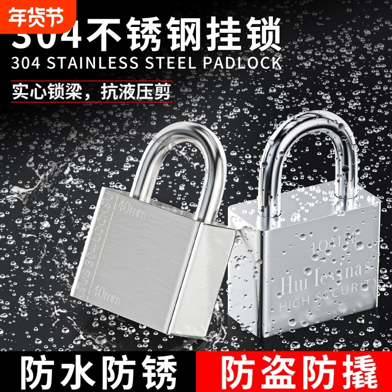 304不锈钢锁门挂锁户外防水防锈大小锁带钥匙防盗锁头柜子锁电箱