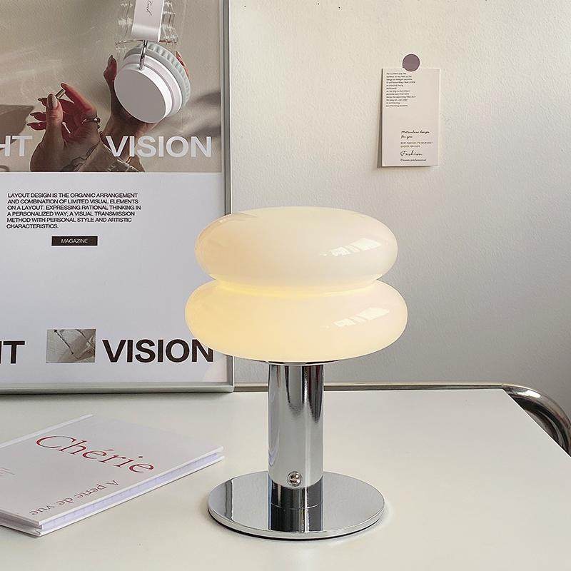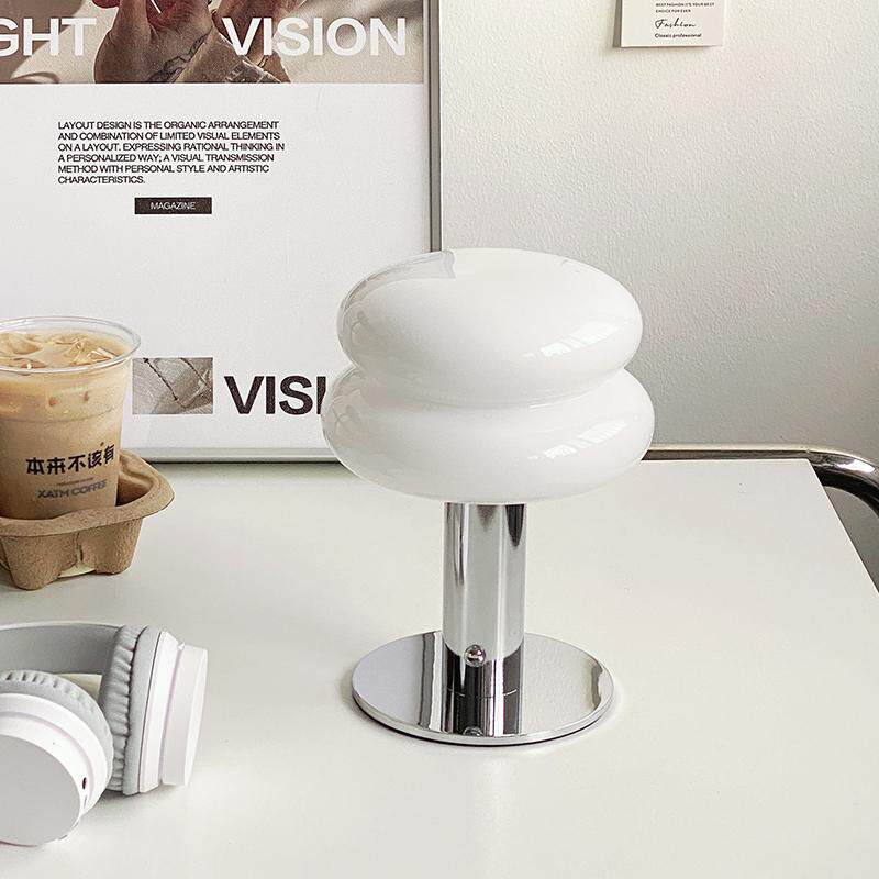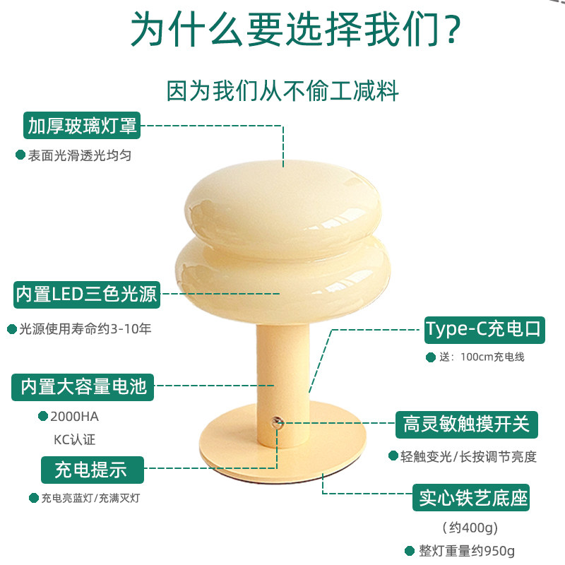 奶油风玻璃灯卧室床头护眼灯中古台灯无线调光充电氛围小夜灯礼物