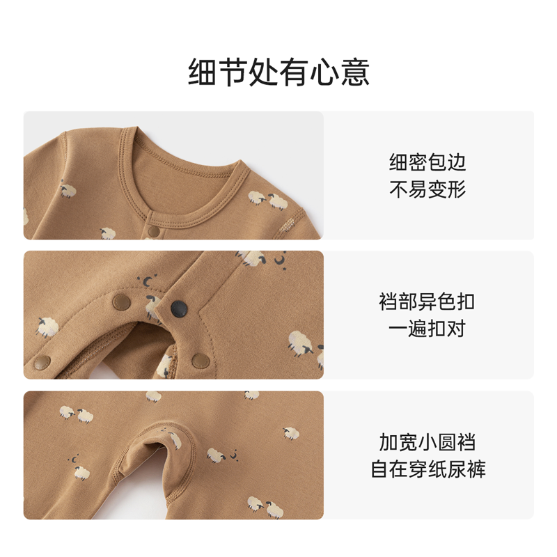 英氏婴儿连体衣秋冬新款保暖新生儿衣服内搭可外穿宝宝哈衣爬服