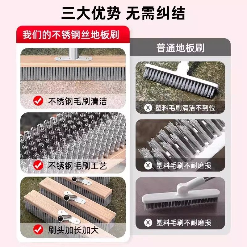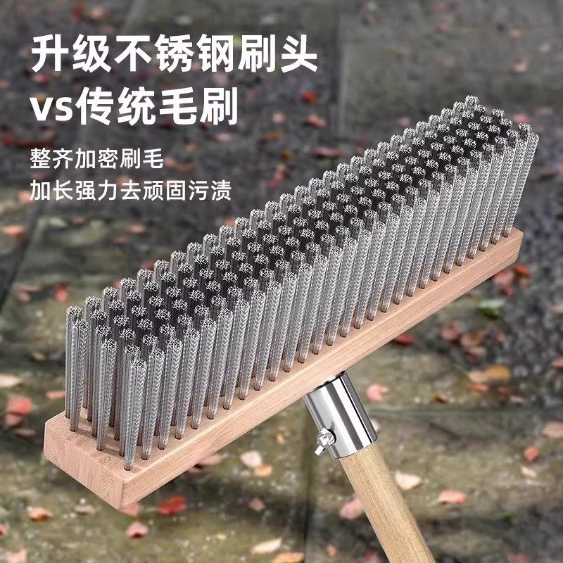 不锈钢丝地刷院子刷地刷子长柄青苔鱼池刷户外地板刷硬毛刷洗地刷