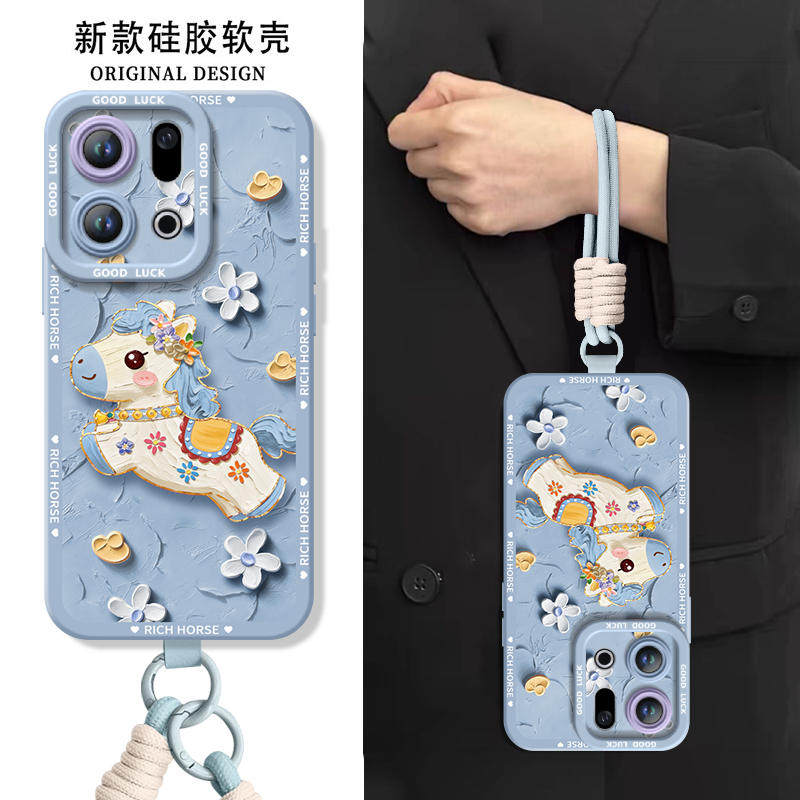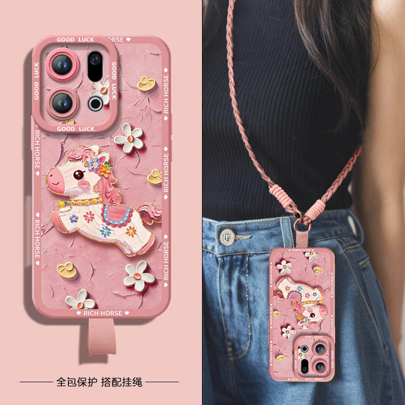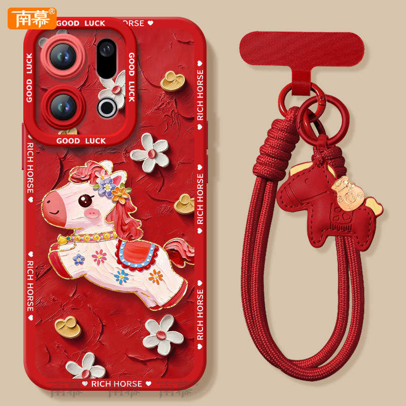鲜花小马适用OPPOFindX9手机壳FindX9Pro套2026马年findx8新款Find硅胶X7防摔Find9X新年款OPPO过年x6红色x5