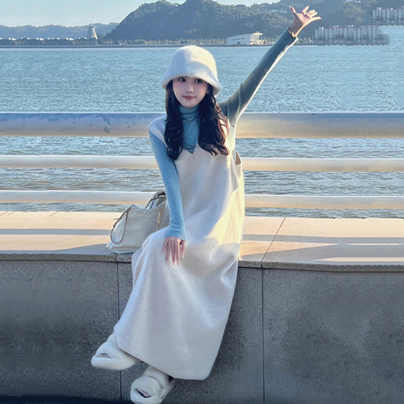 孕妇秋装套装2025新款时尚宽松时髦背带连衣裙长袖上衣春秋两件套