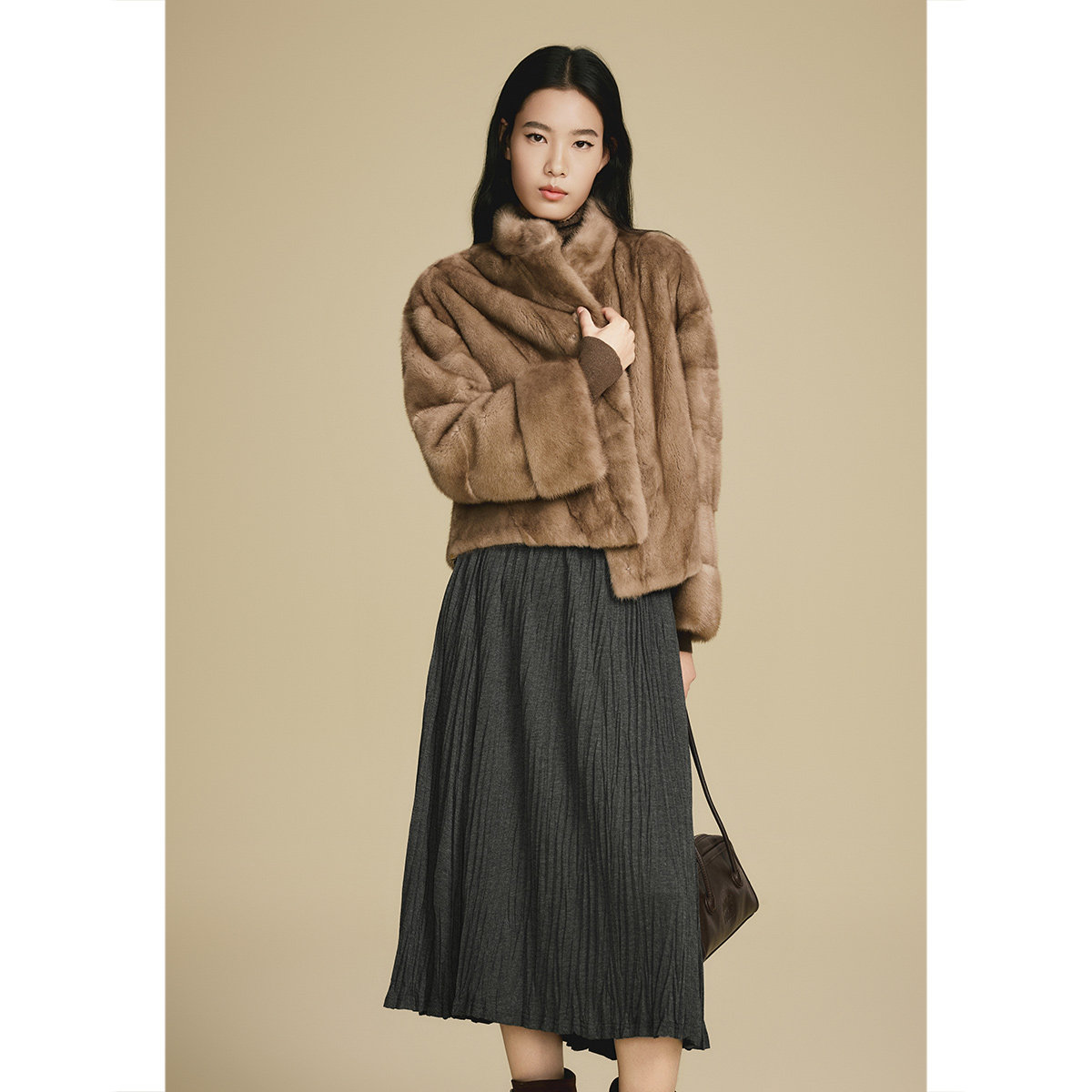 诗篇专选经典奢华立领短款水貂外套整貂皮草2025冬季新款