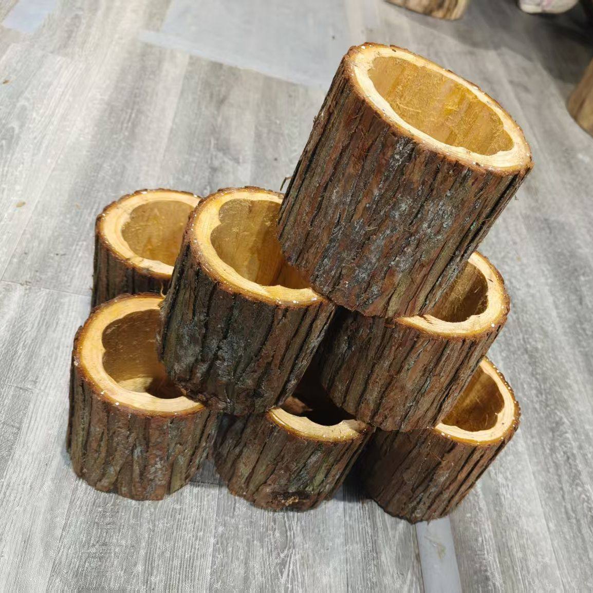 原木头实木松木创意花盆多肉绿植盆栽铁皮石斛插花装造装饰摆件