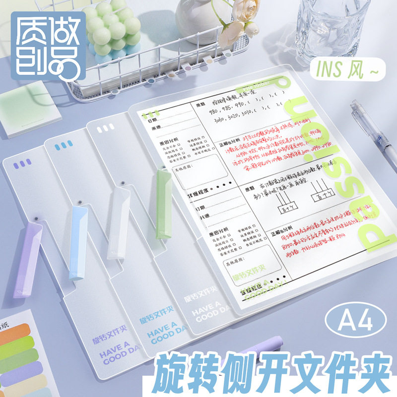 A4活页文件夹多孔资料册资料夹收纳册学生专用试卷收纳袋简约ins风办公档案整理文件袋加厚大容量插页卷子