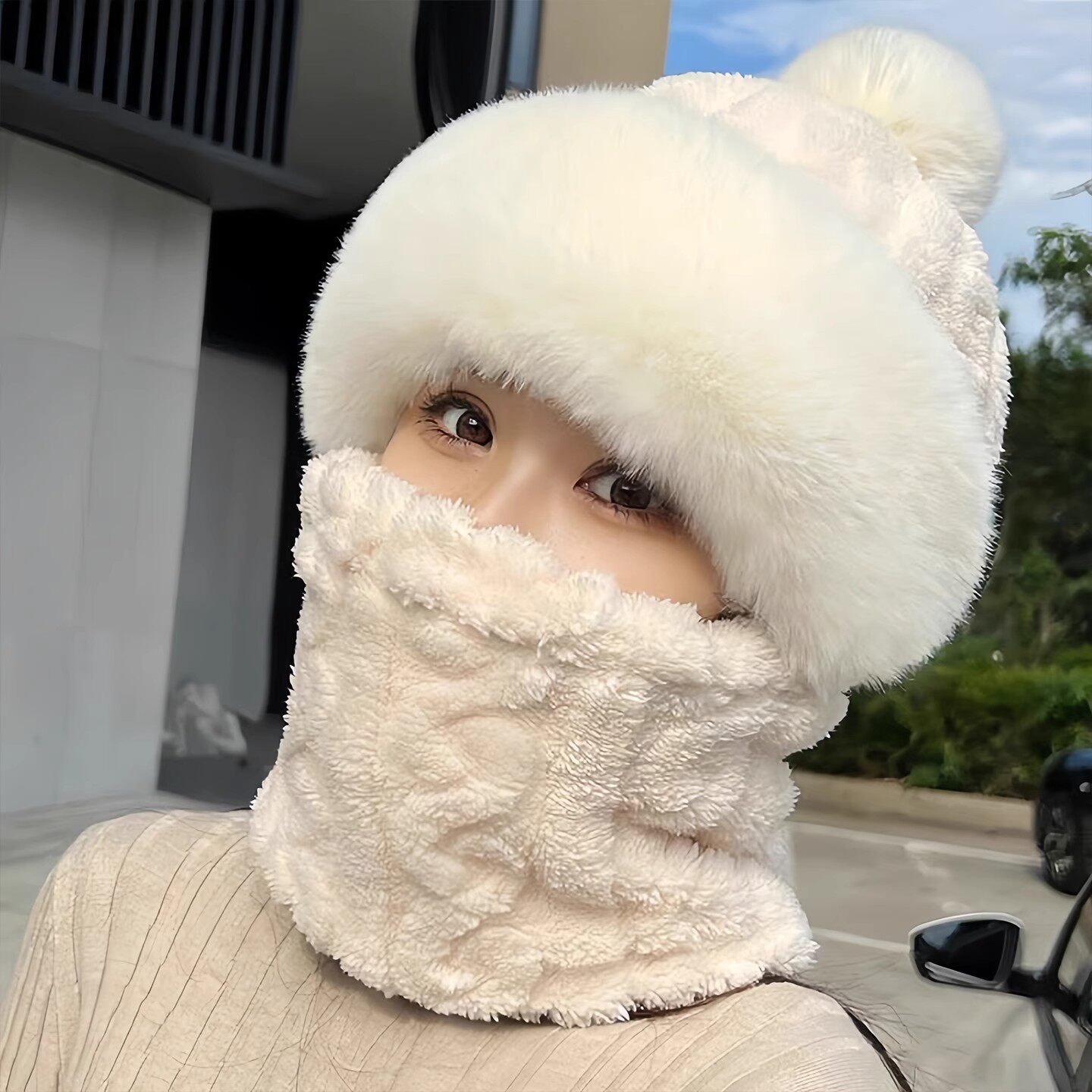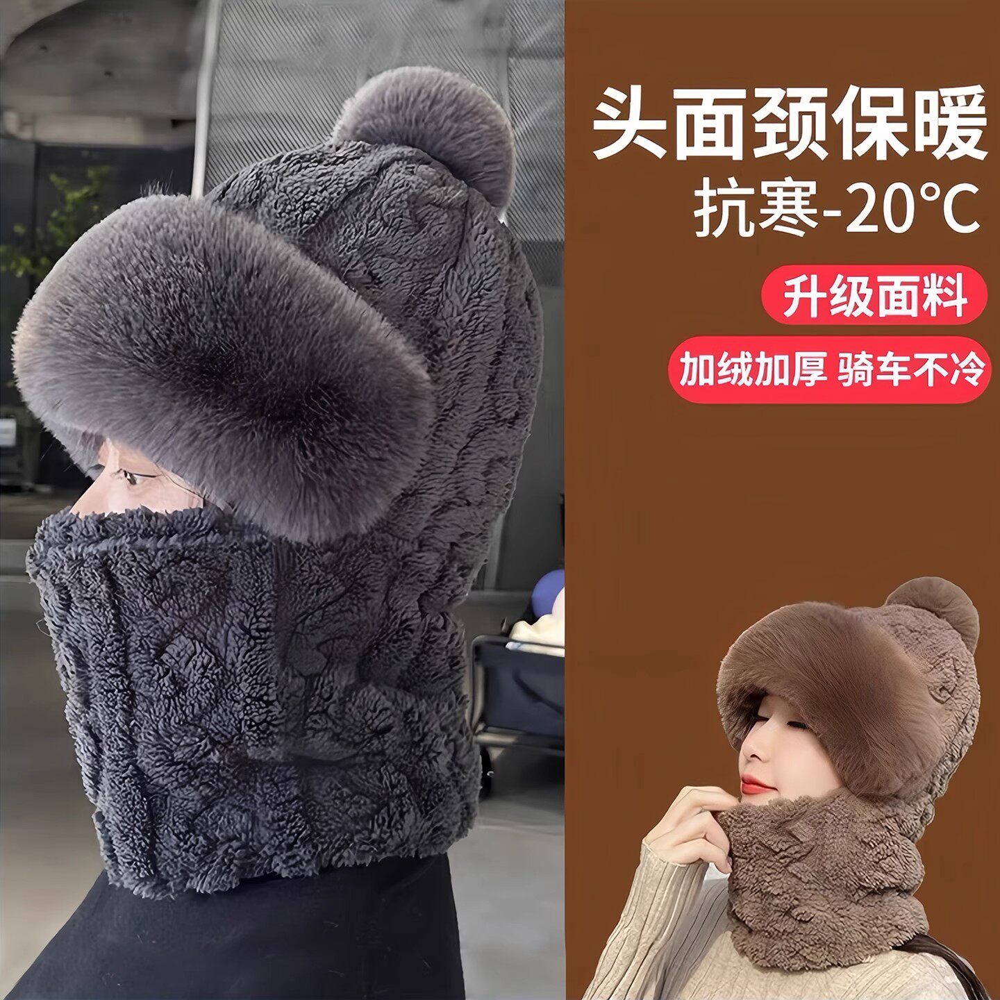套头帽子围脖一体女2025新款冬季百搭电动车骑车保暖神器防风护脖