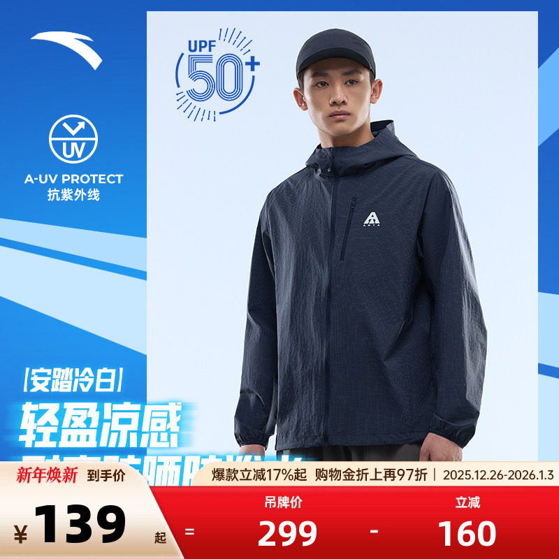 安踏轻壳防晒衣丨户外冰丝风衣男士秋冬季抗紫外线透气钓鱼外套