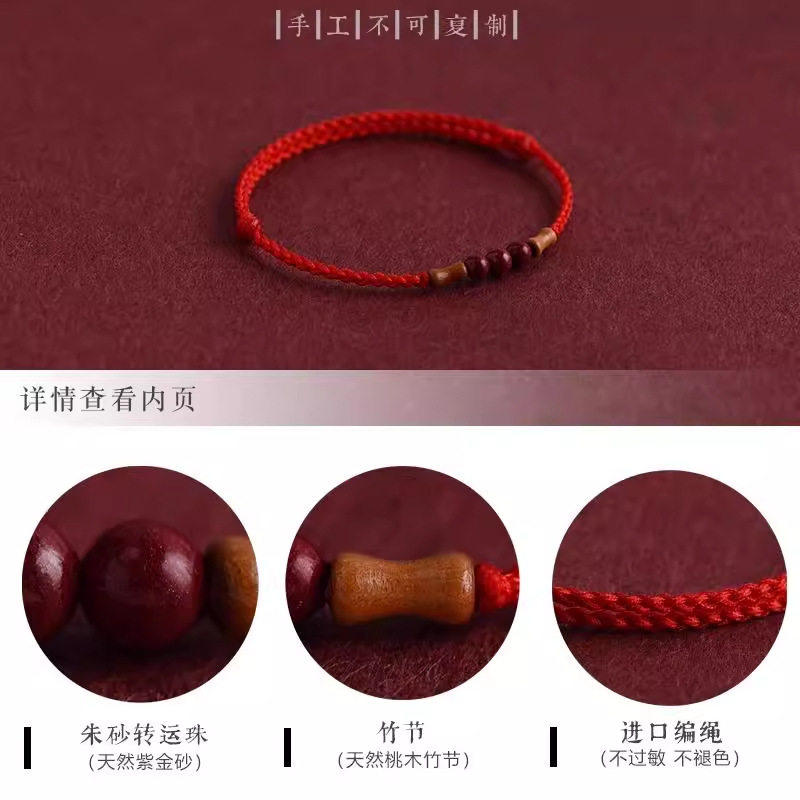 天然桃木竹节红绳手链脚链男女朱砂转运珠本命年编织手绳好运佩戴