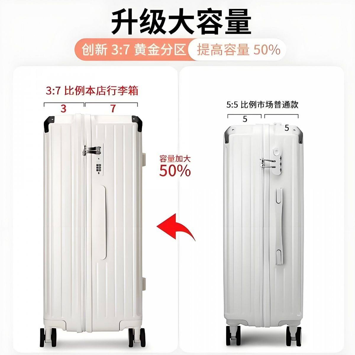 新款三七分行李箱五轮多功能拉杆箱大容量万向轮耐用密码箱旅行箱