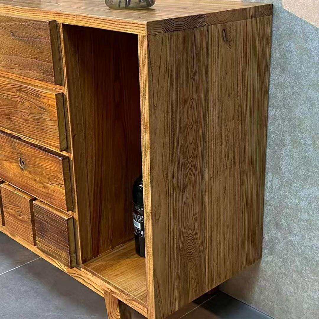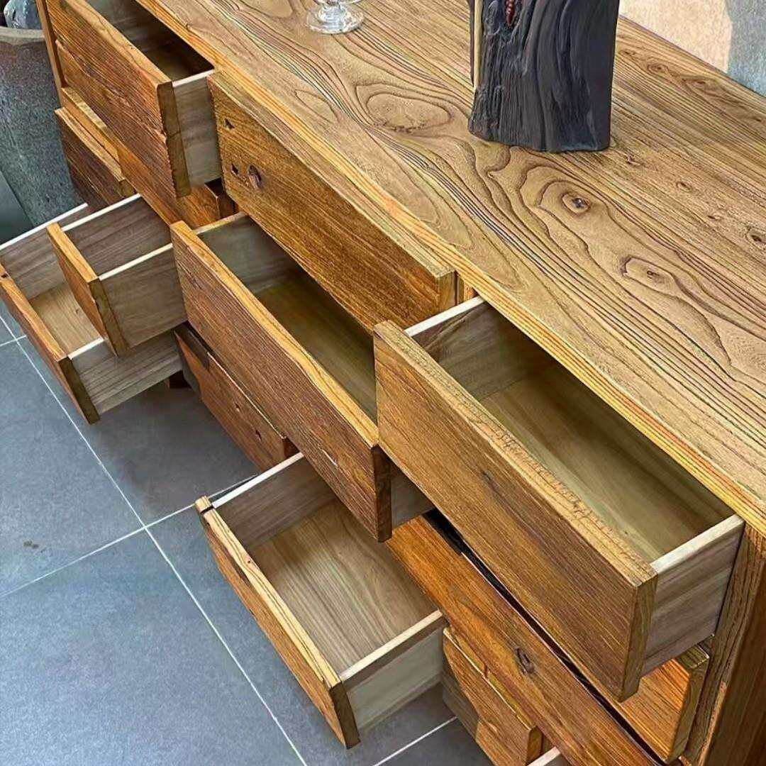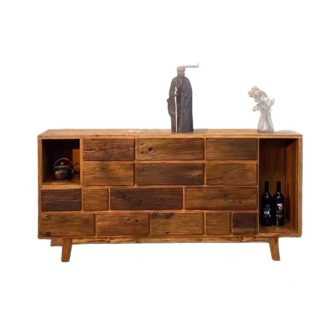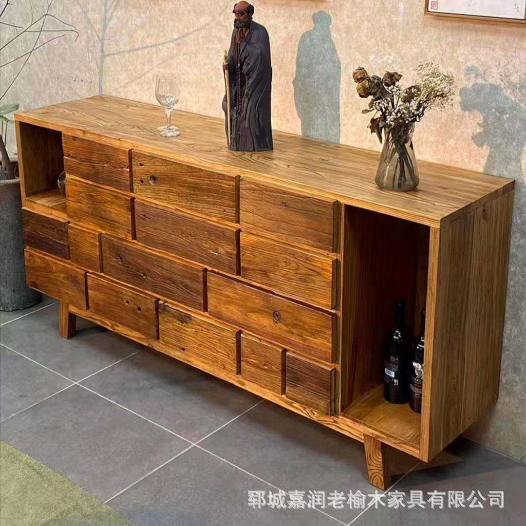 诧寂风老榆木餐边柜实木抽屉式收纳柜客厅玄关置物柜民宿储物柜