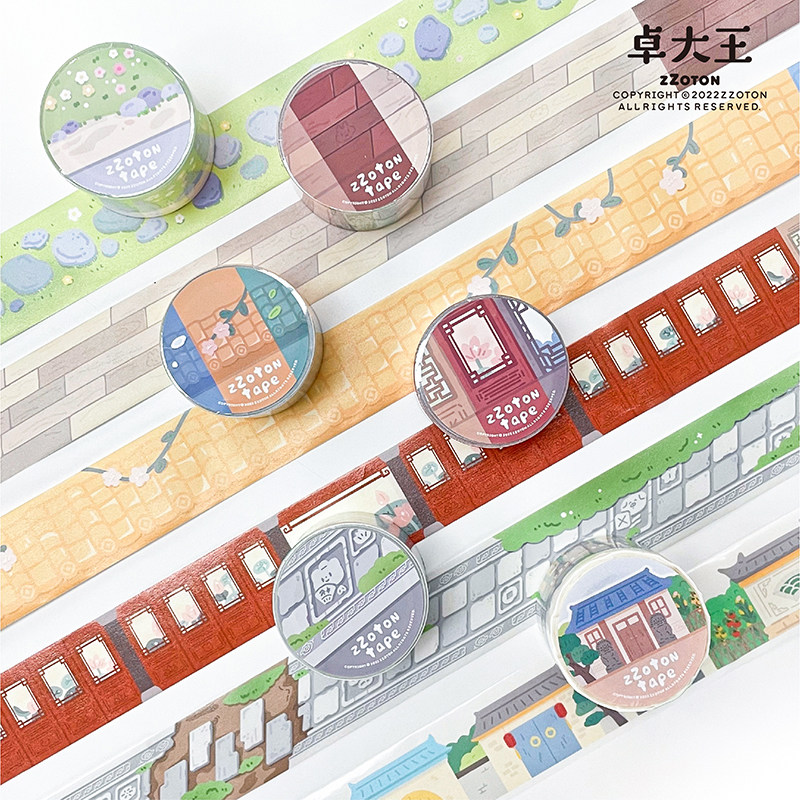 卓大王【造景胶带】古风场景城市风景马路手帐装饰异形素材贴纸卷