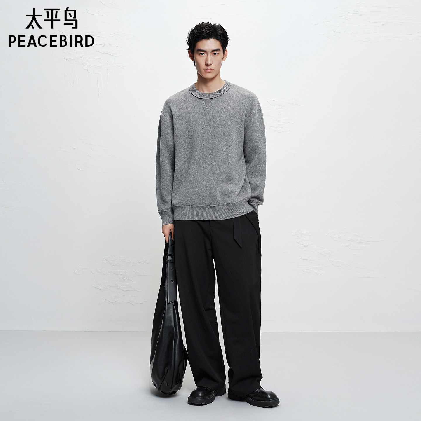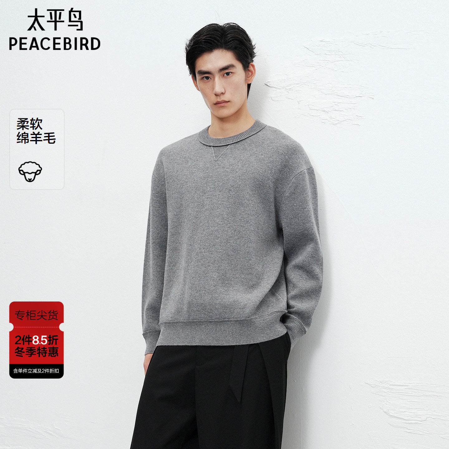 【商场同款】太平鸟男装羊毛圆领毛衫冬新款羊绒针织衫B1EBF4B19