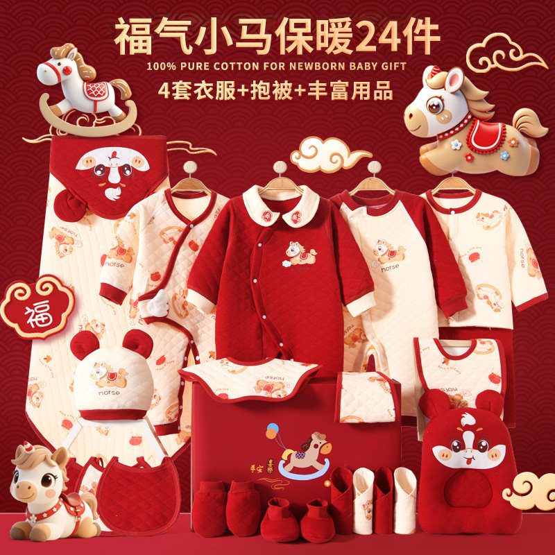 新生儿婴儿礼盒秋冬连体衣礼物满月送礼衣服红色宝宝过年拜年服