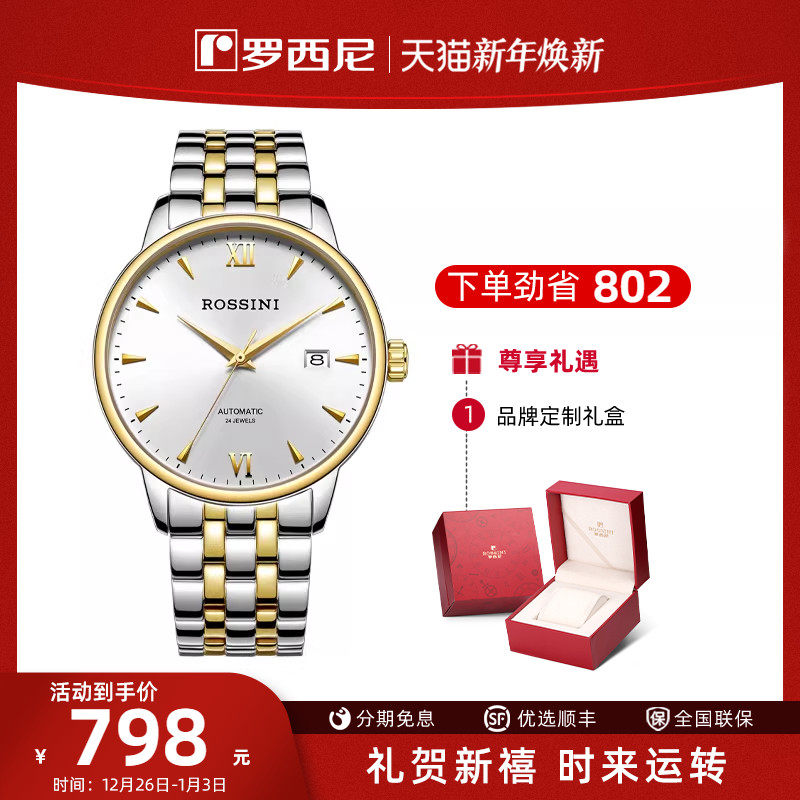 【送爸爸礼物】罗西尼官方手表男士简约休闲商务防水机械表男腕表