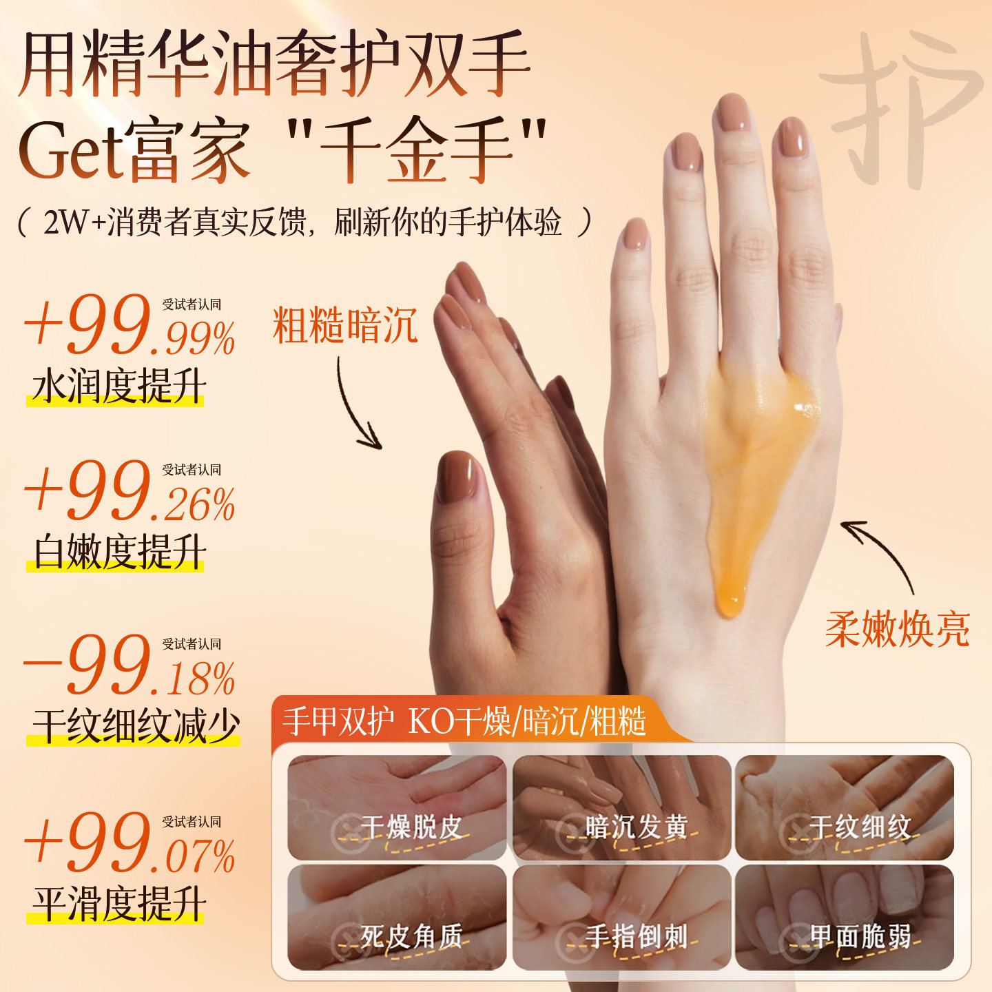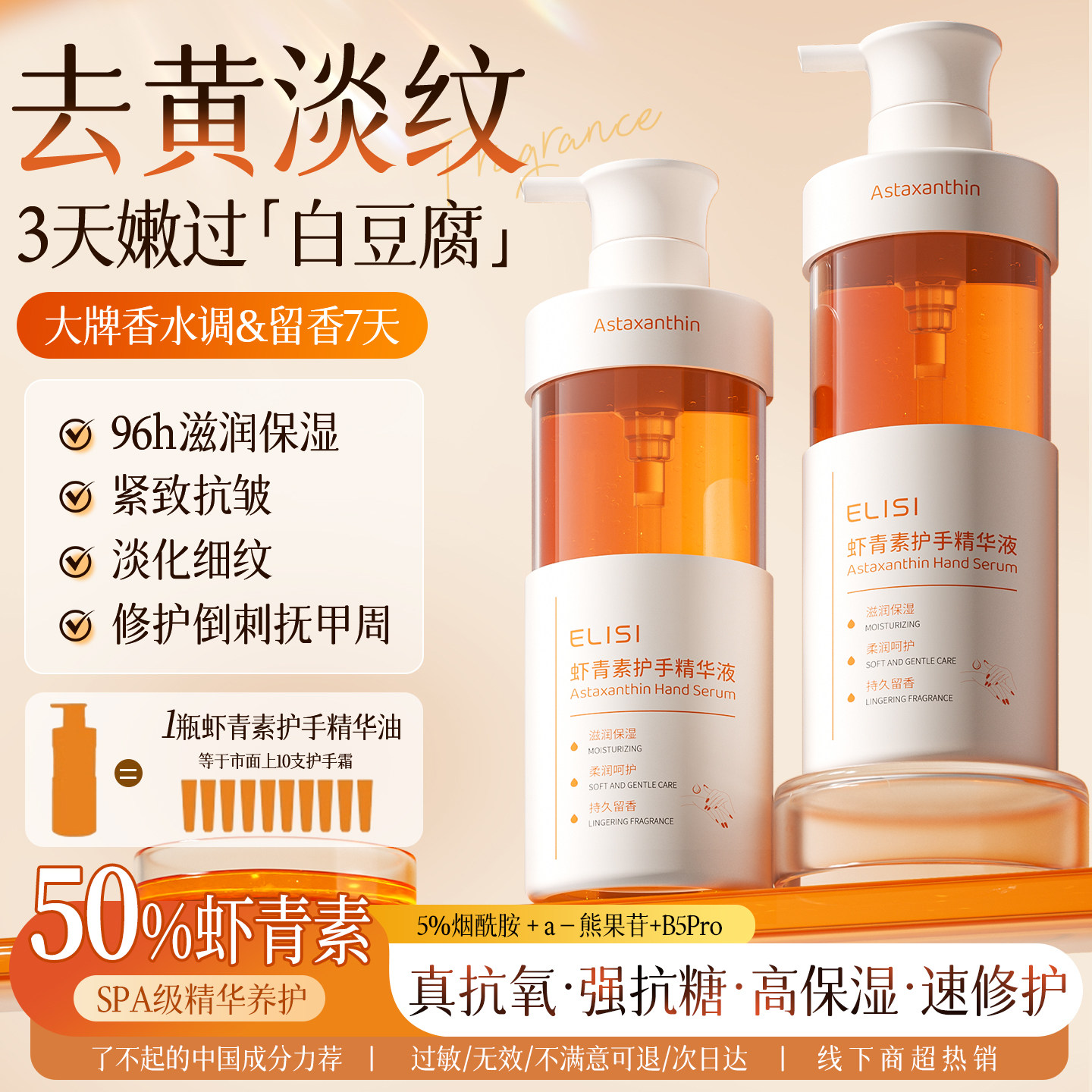 护手霜女精华油滋润保湿防干裂去手纹按压式手部护理补水大容量