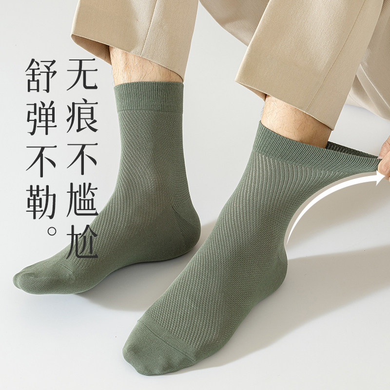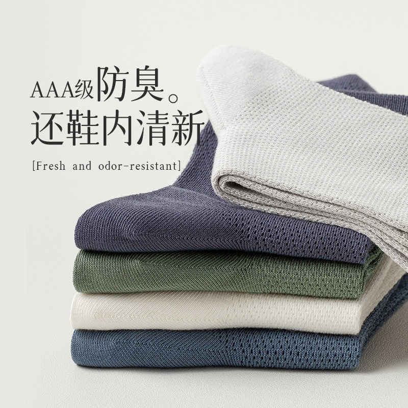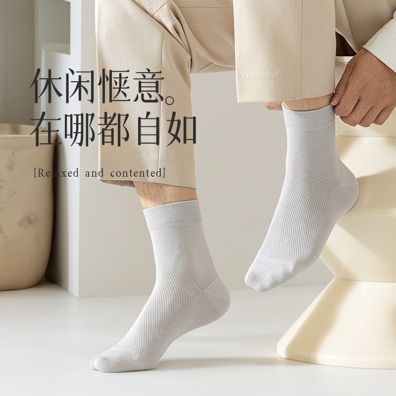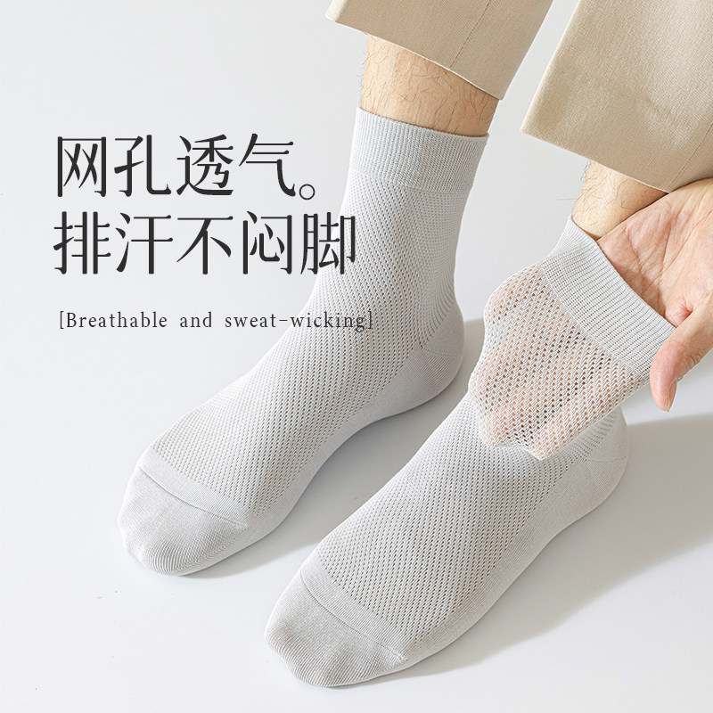袜子男款夏季中筒袜防臭运动男袜夏天纯色棉袜男士薄款网眼商务袜