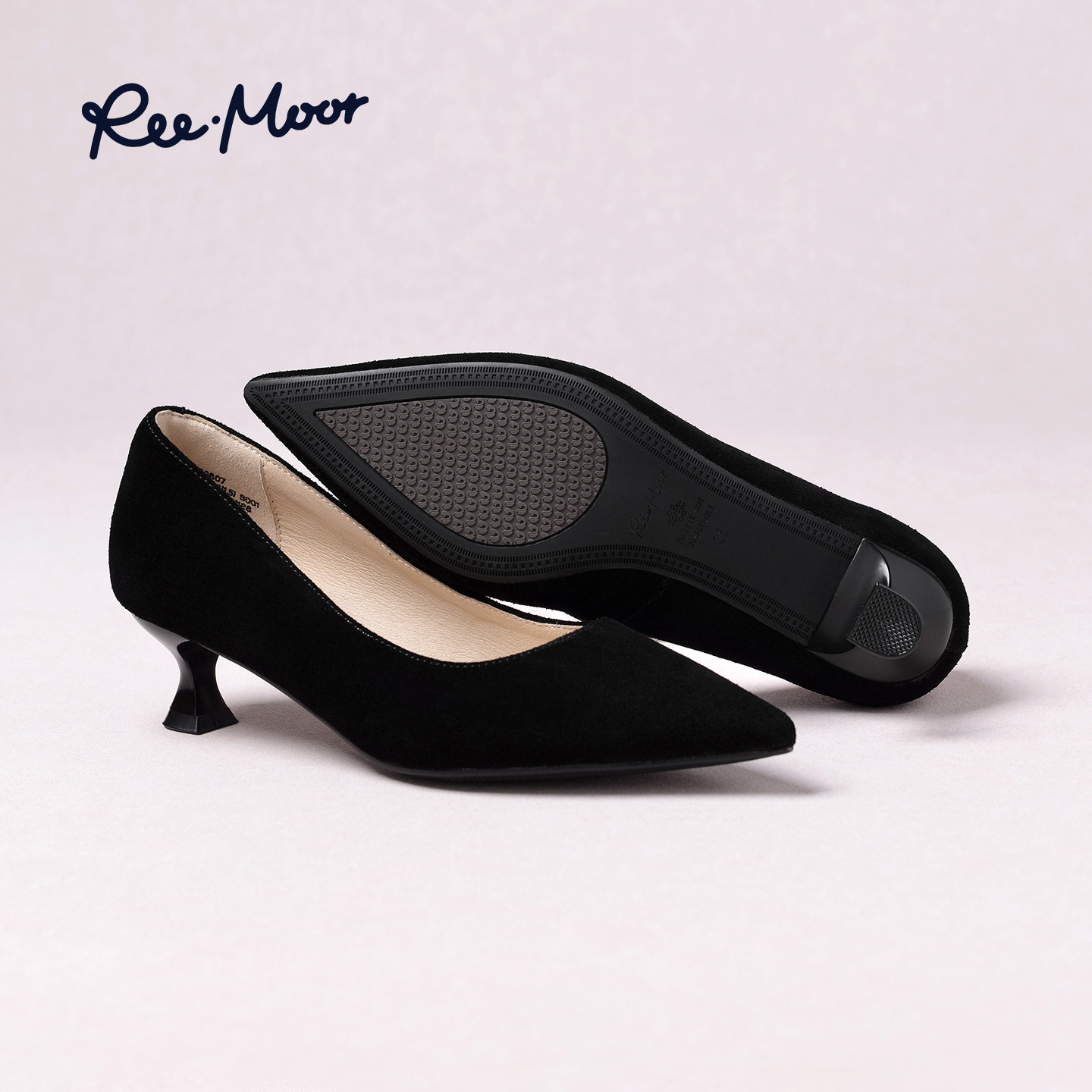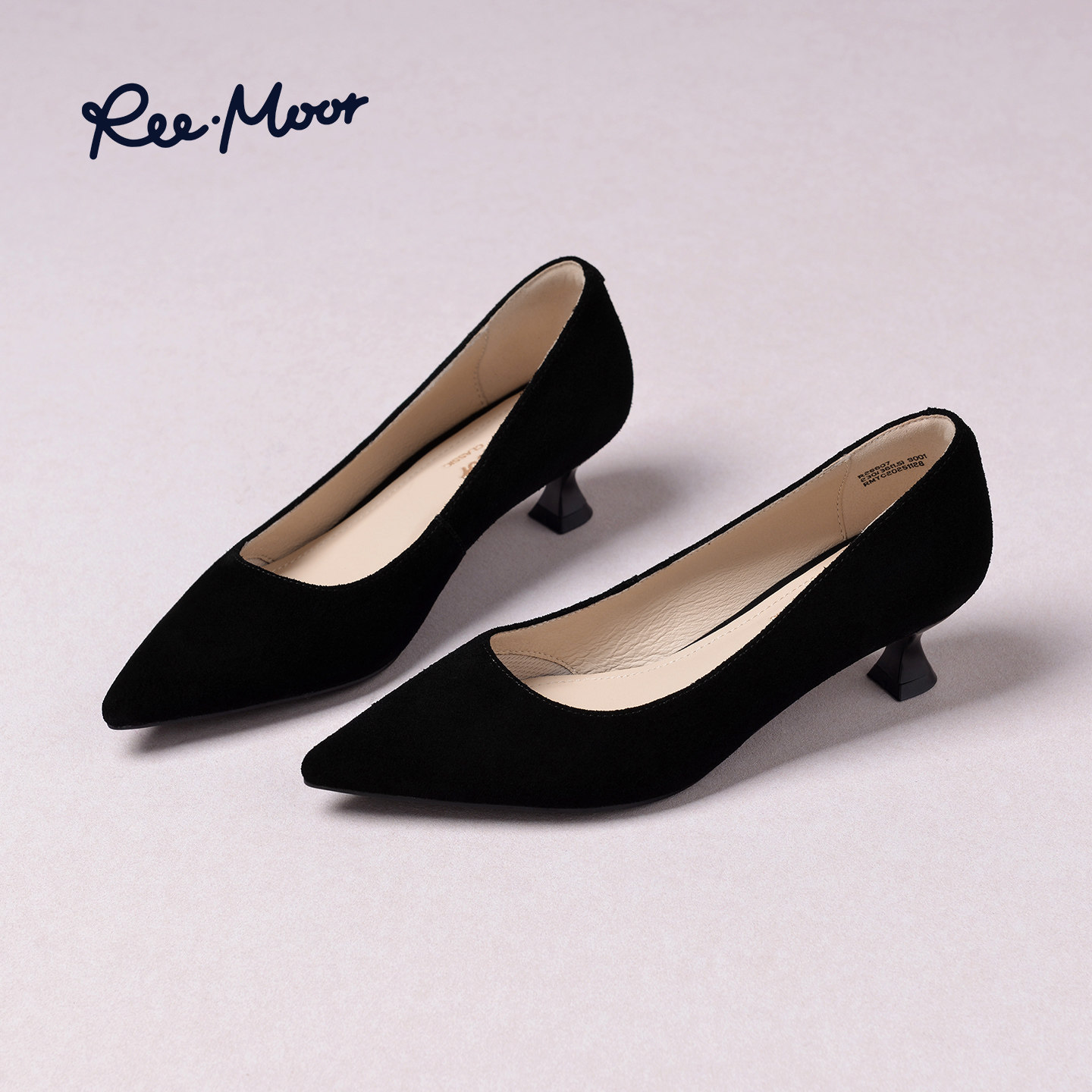 REEMOOR睿慕2026春季新款通勤尖头单鞋女黑色浅口粗跟气质工作鞋