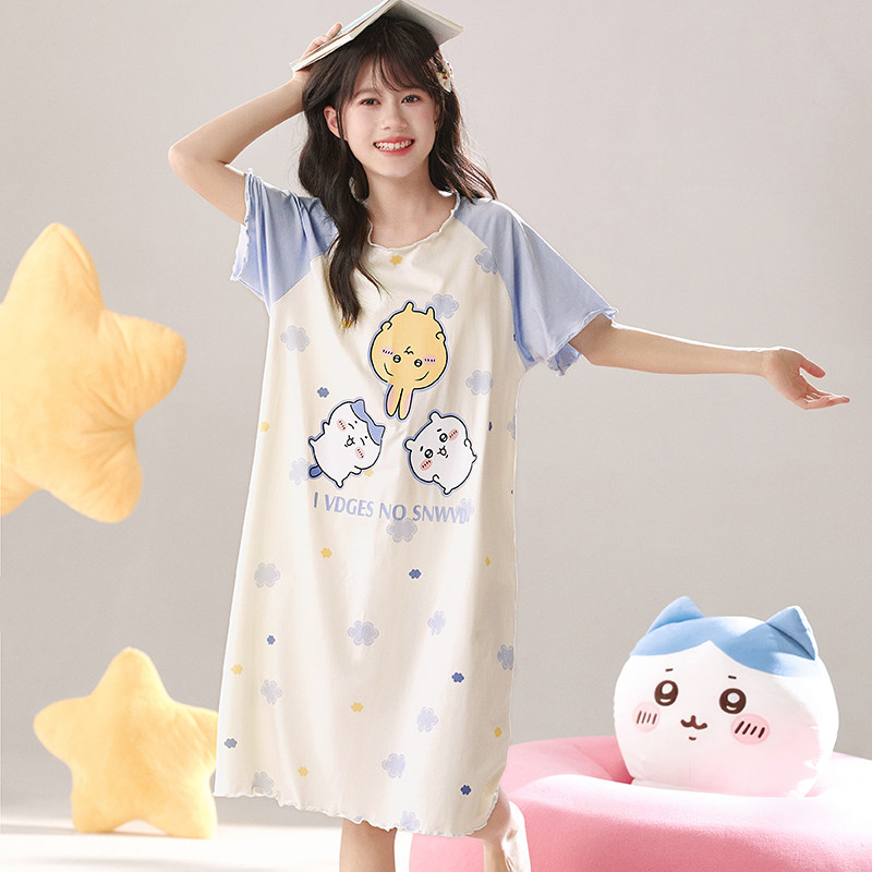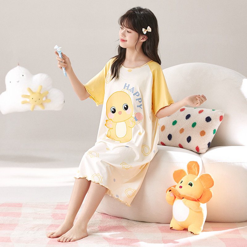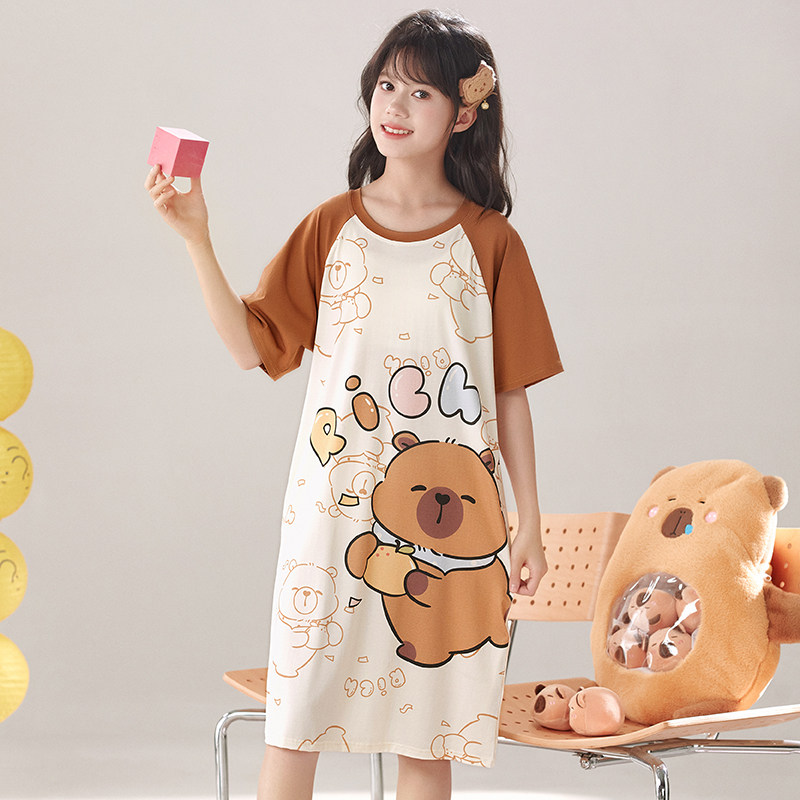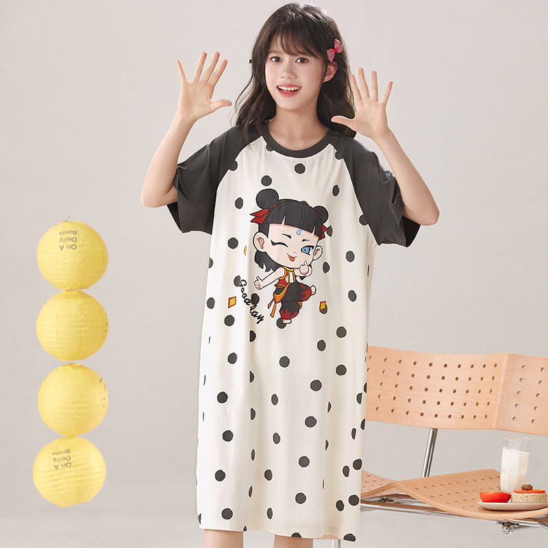 夏季薄款儿童莫代尔女童睡裙可爱卡通夏天小女孩大童中长裙家居服