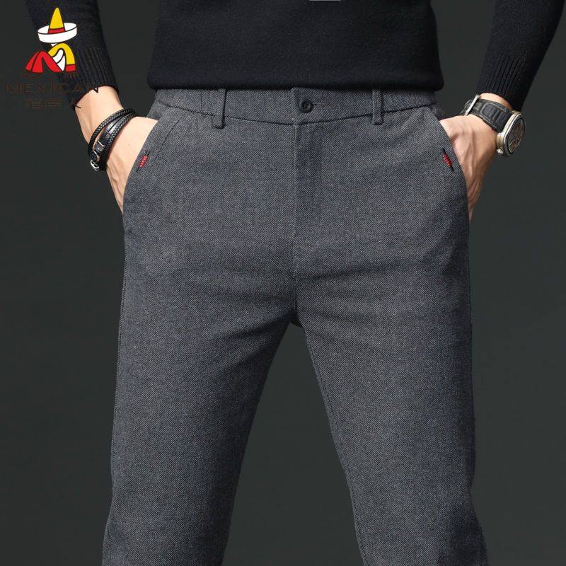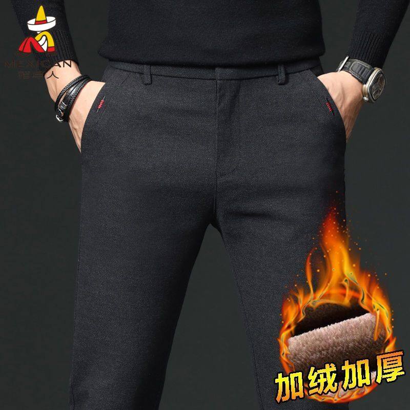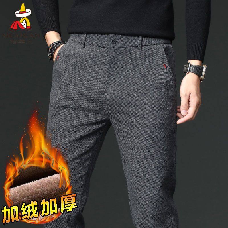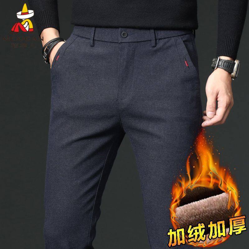 罗蒙加绒加厚男士休闲裤商务休闲秋冬季新款弹力直筒西裤秋冬款