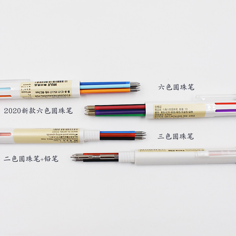 包邮日本MUJI无印良品新款三角简约白杆6色圆珠笔 2+1多功能油笔