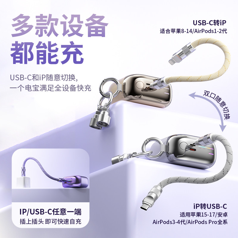 【充电宝3C认证可上飞机】政府补贴15%品胜mini小相机2025新款迷你超薄小巧便携自带线快充适用华为苹果小米