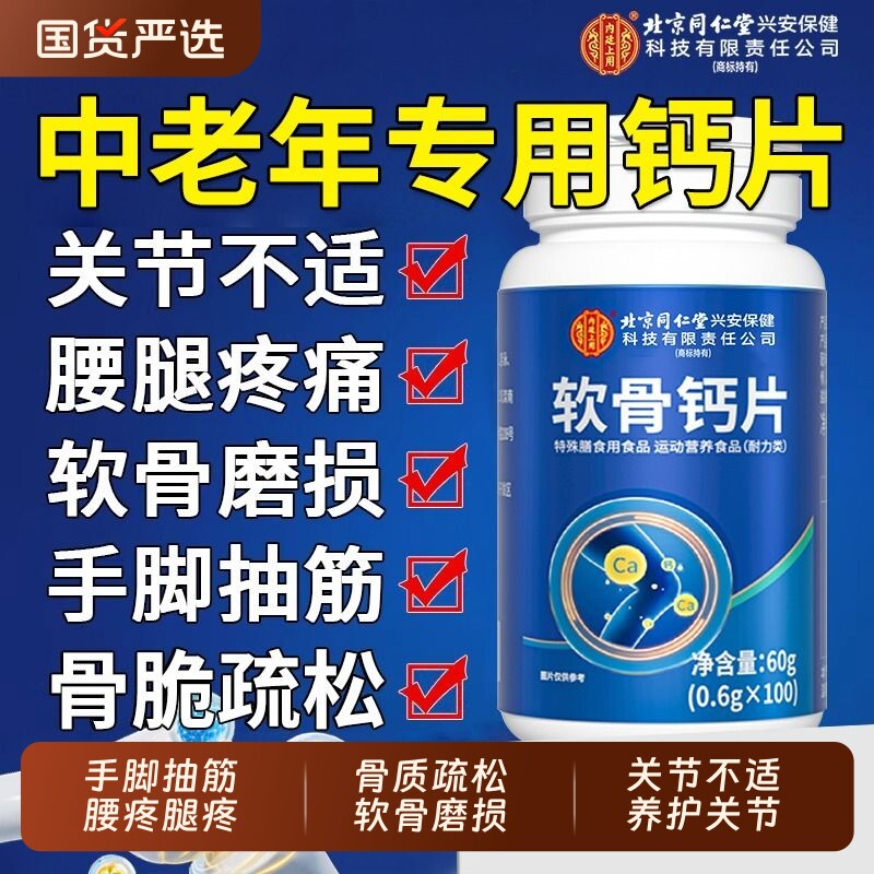 北京同仁堂软骨钙片中老年人腿抽筋腰腿疼骨质疏松官方旗舰店正品