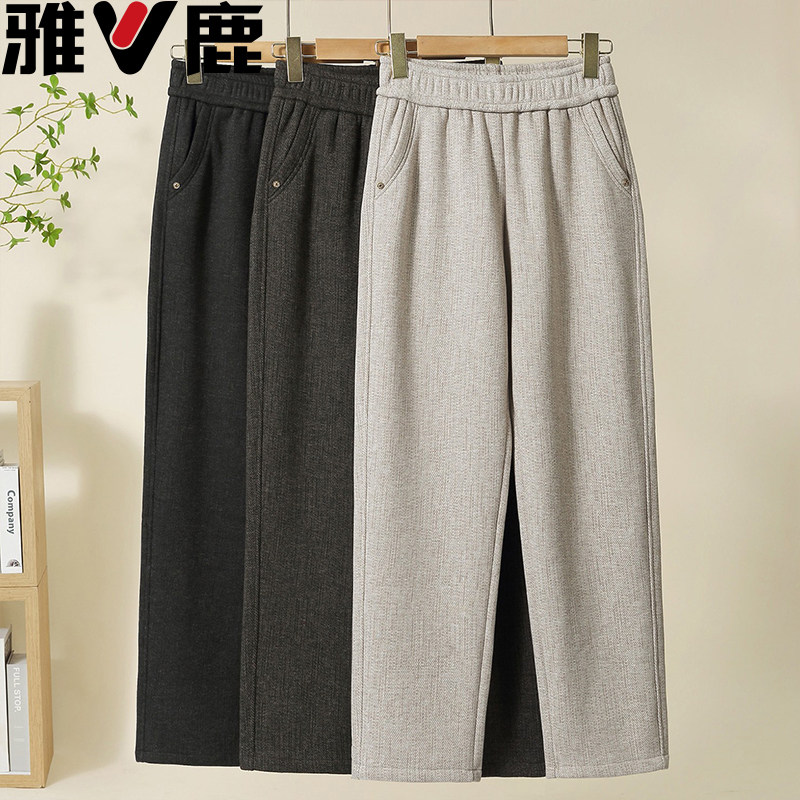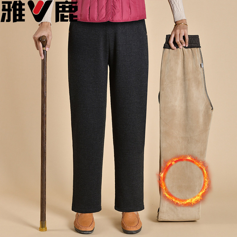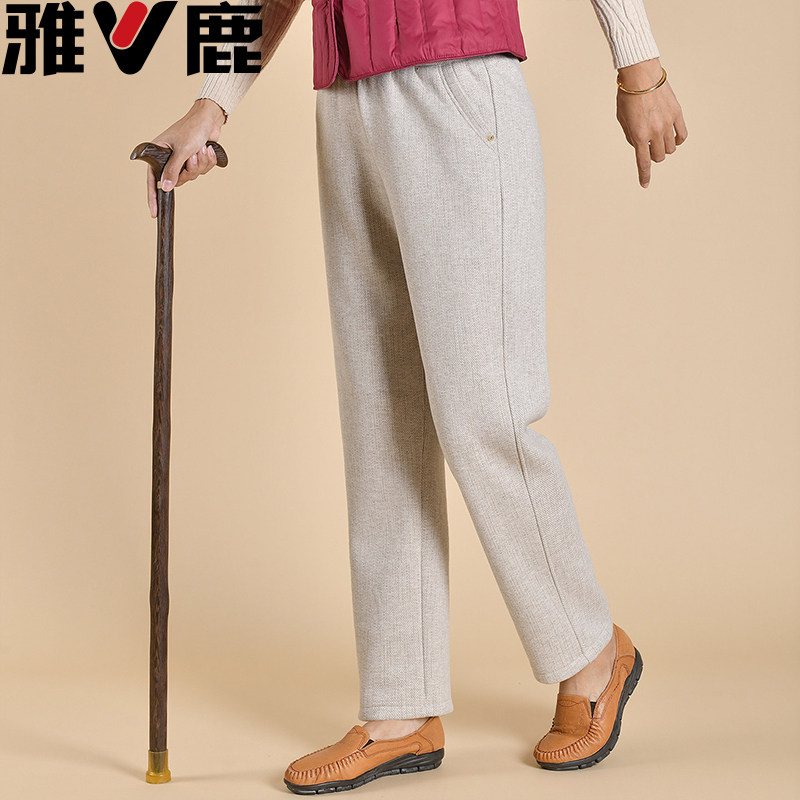 雅鹿妈妈裤子春秋宽松直筒60岁奶奶裤中老年人女裤冬季加绒厚高腰