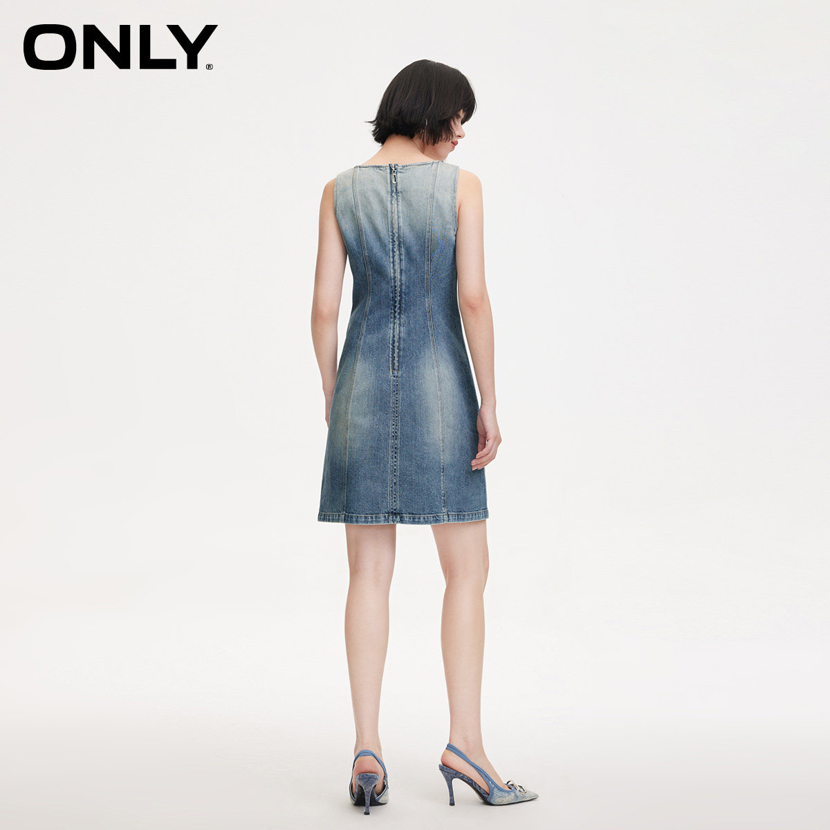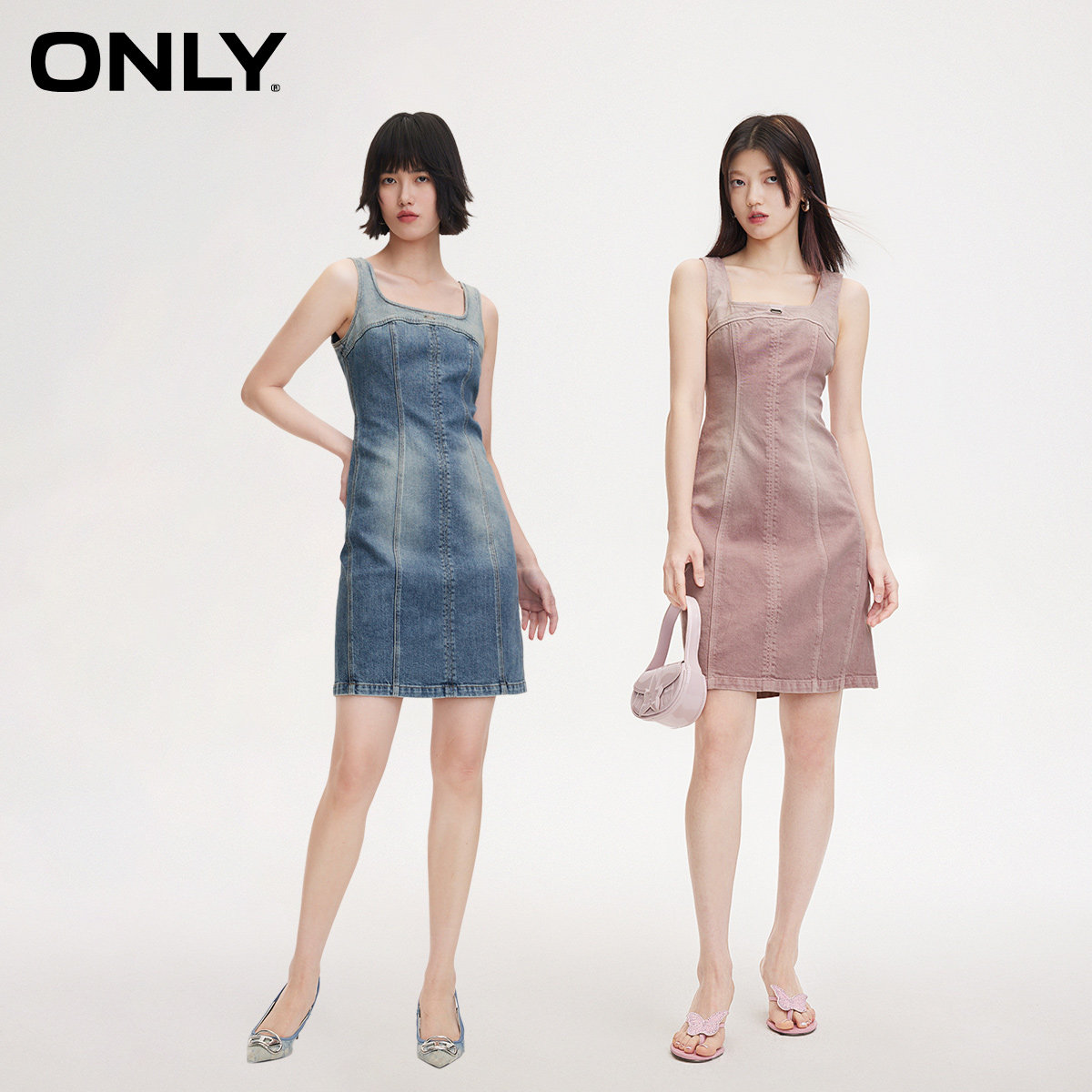 【ONLY奥莱】春夏新款复古做旧方领短款吊带牛仔连衣裙女