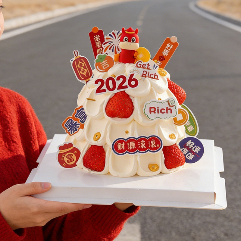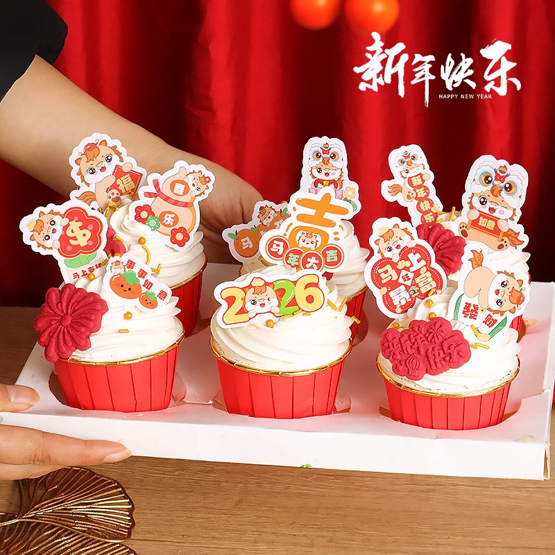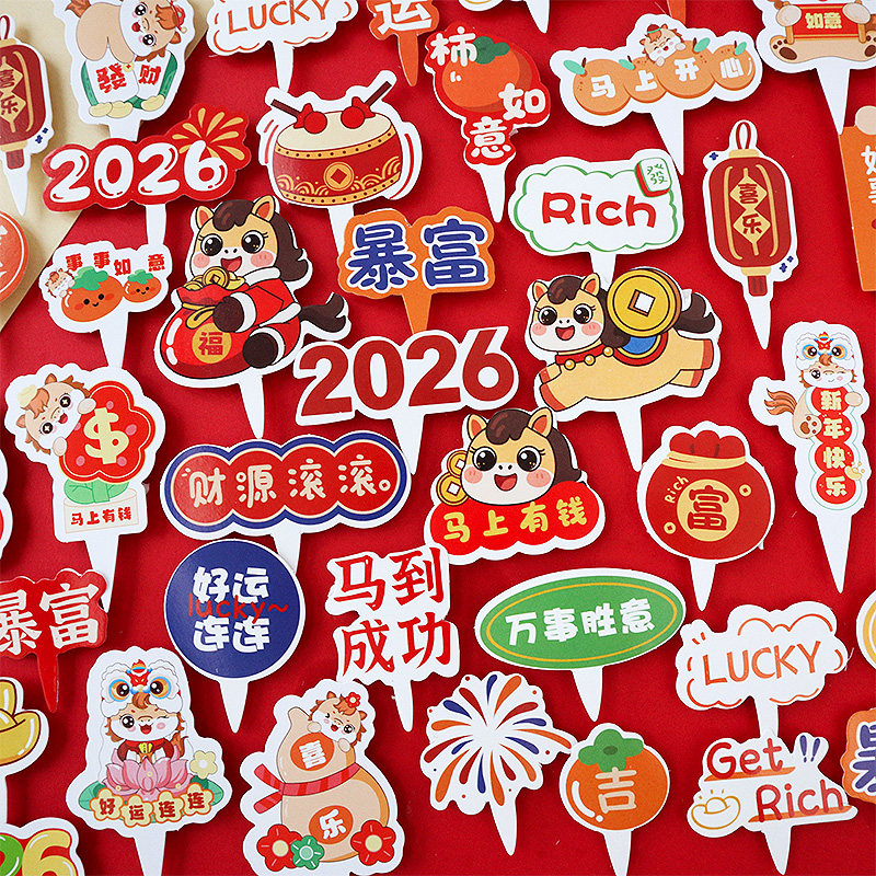 2026跨年蛋糕装饰插件新年马到成功插卡马年元旦纸杯烘焙甜品插牌
