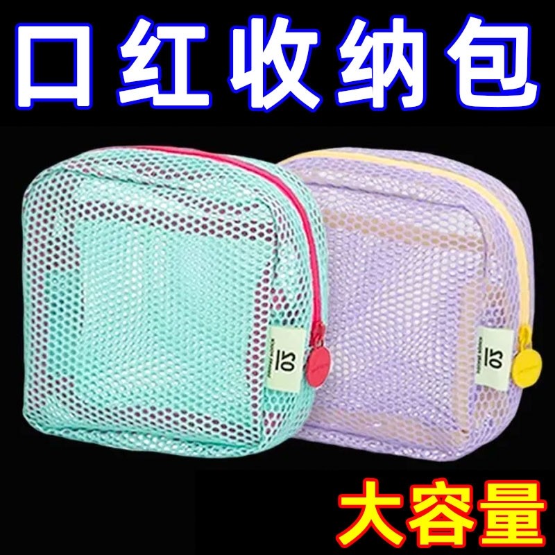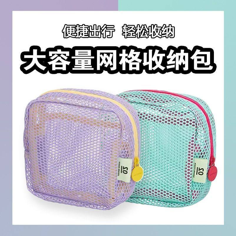 彩色手工网纱便携豆腐包大容量多用途化妆品收纳旅游数据线化妆包