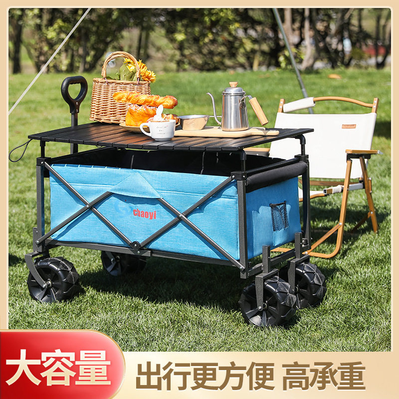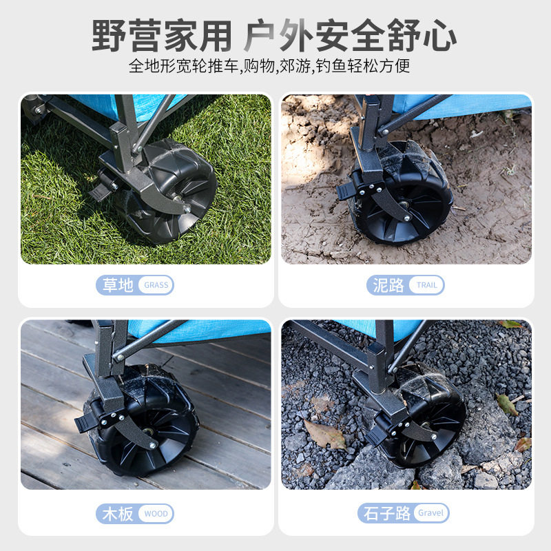 露营车户外小推车碳钢摆摊折叠儿童可躺聚会野餐营地推车双刹