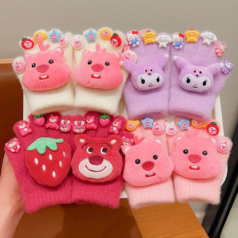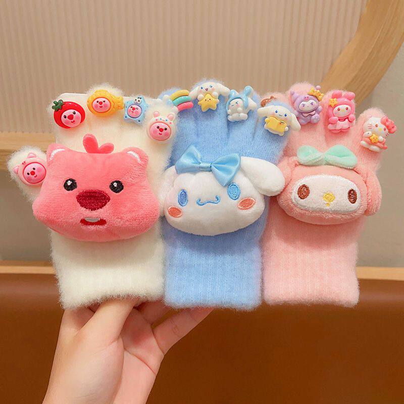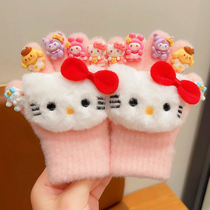 女童手套冬天库洛米毛绒保暖秋冬季儿童五指套宝宝分指套连指卡通