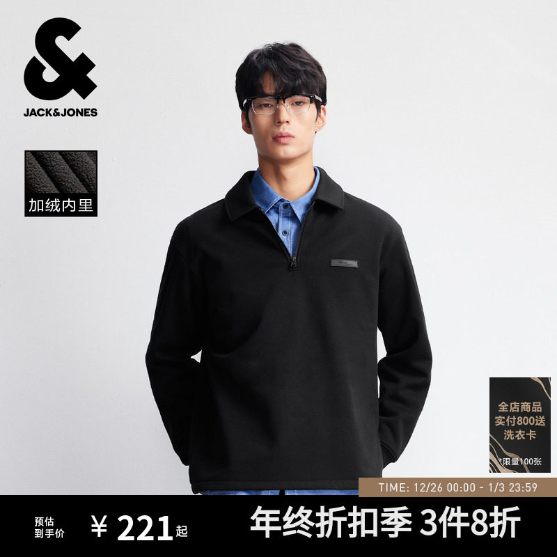 【加绒】杰克琼斯男装25年秋季新款宽松拉链POLO领卫衣外套PU皮标