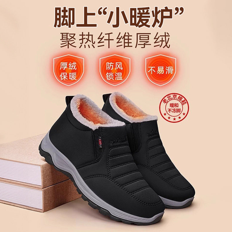 冬季老北京布鞋男高帮加绒加厚保暖健步鞋中老年防滑羊毛雪地耐磨