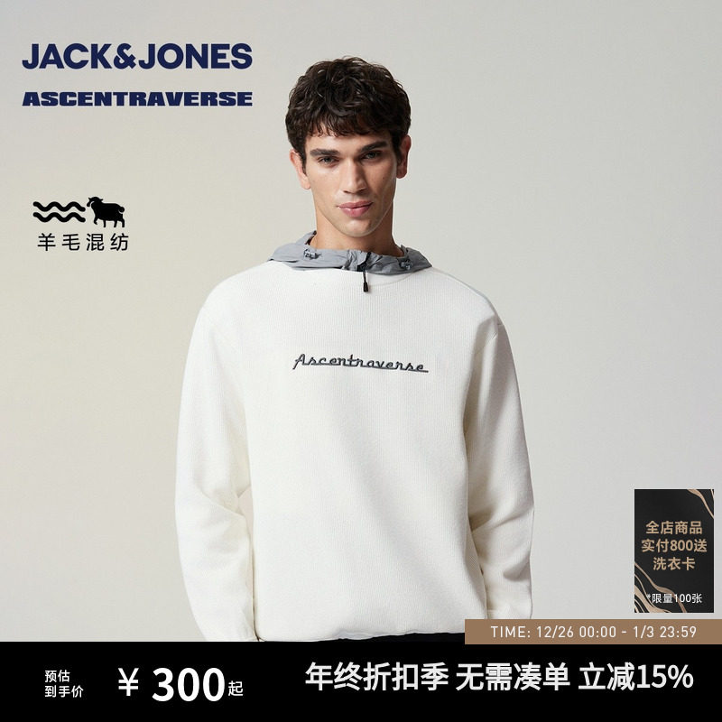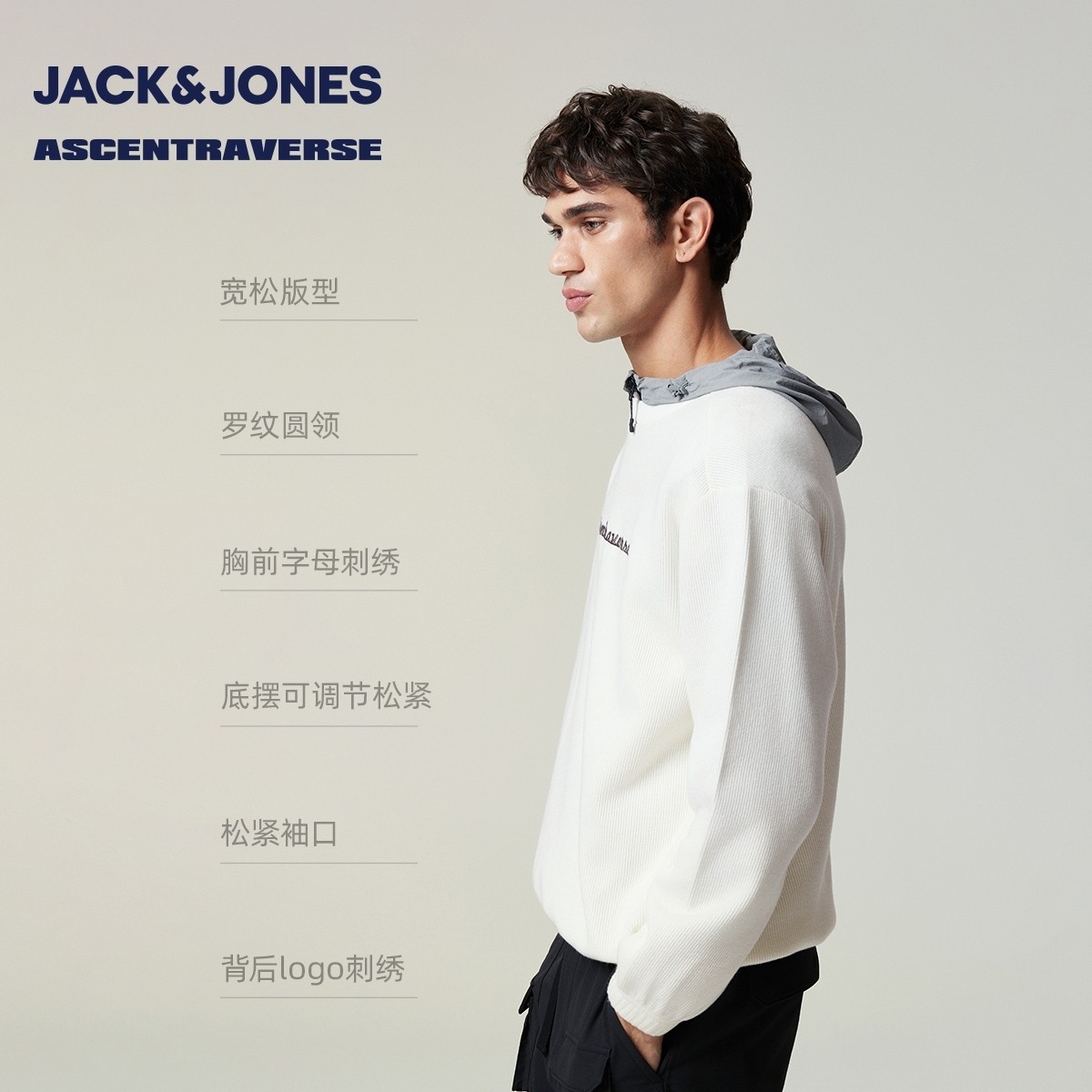 【AT系列】杰克琼斯男装卫衣冬季新款刺绣可调底摆宽松圆领上衣