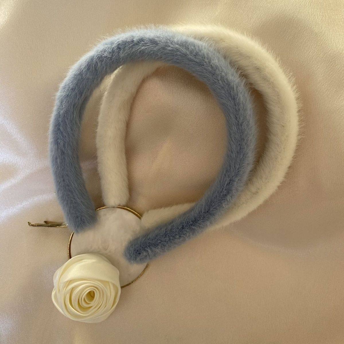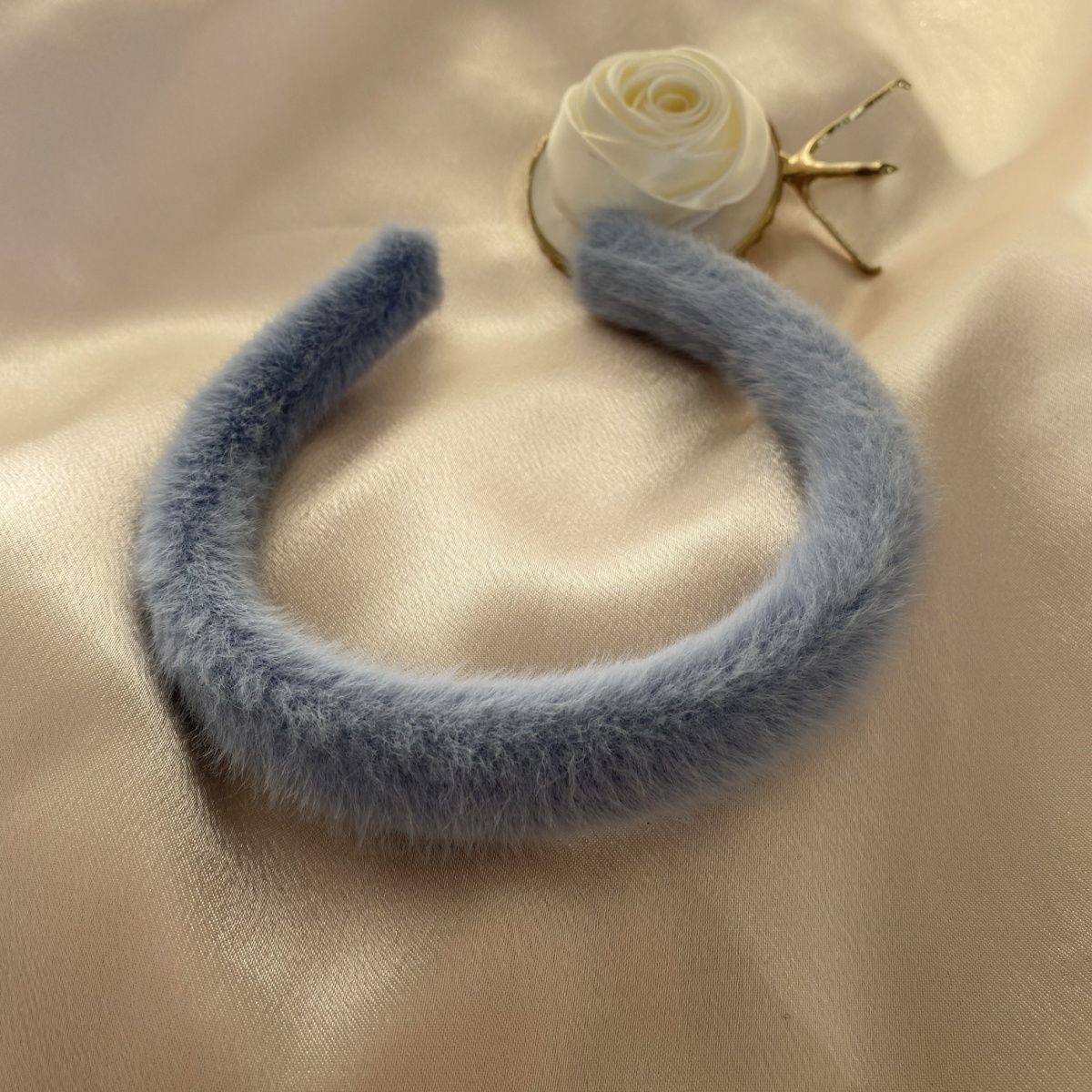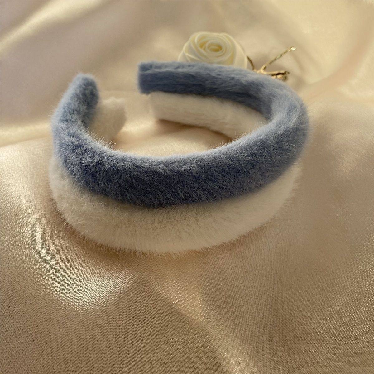 2025新款毛绒发箍女可爱白色蓝发卡韩国气质简约网红秋冬毛毛头箍