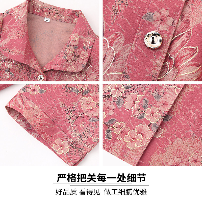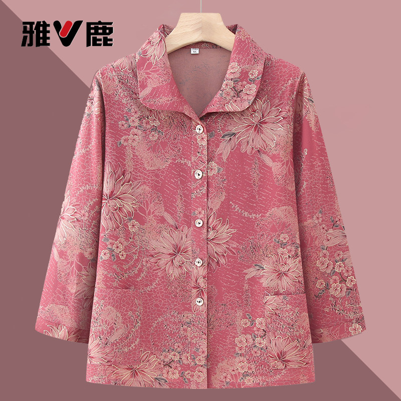 雅鹿正品老太太夏装新款衬衫宽松中老年女装奶奶长袖春秋衣服薄款