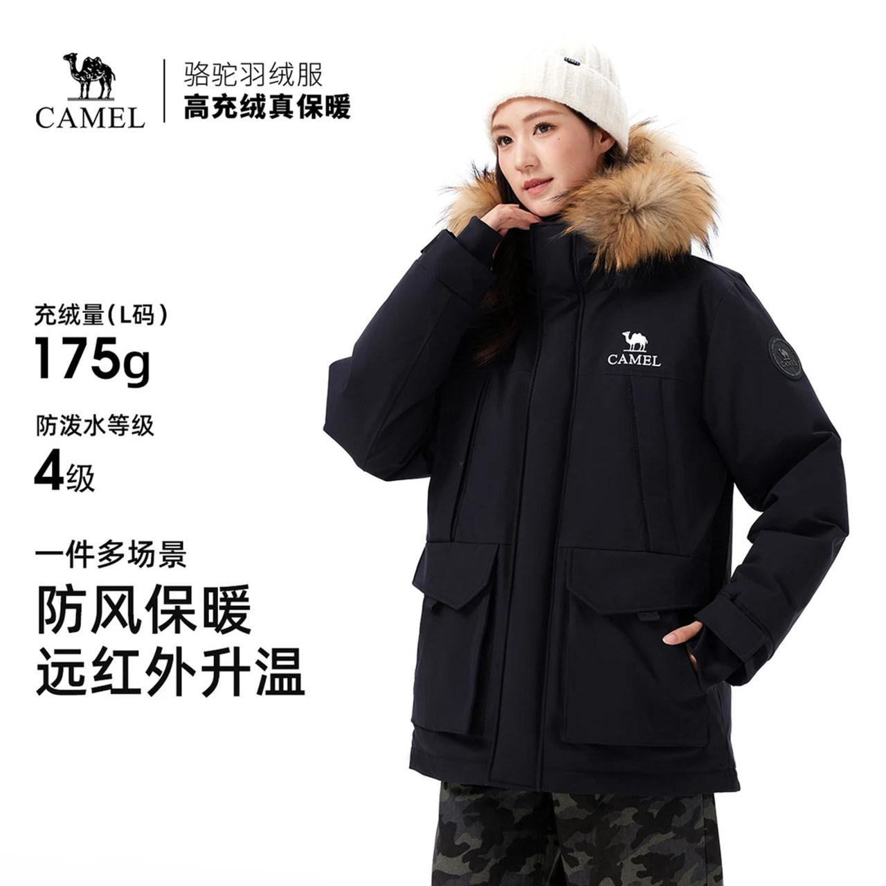 骆驼女装派克羽绒服加厚2025冬季新款保暖防寒毛领连帽羽绒外套男