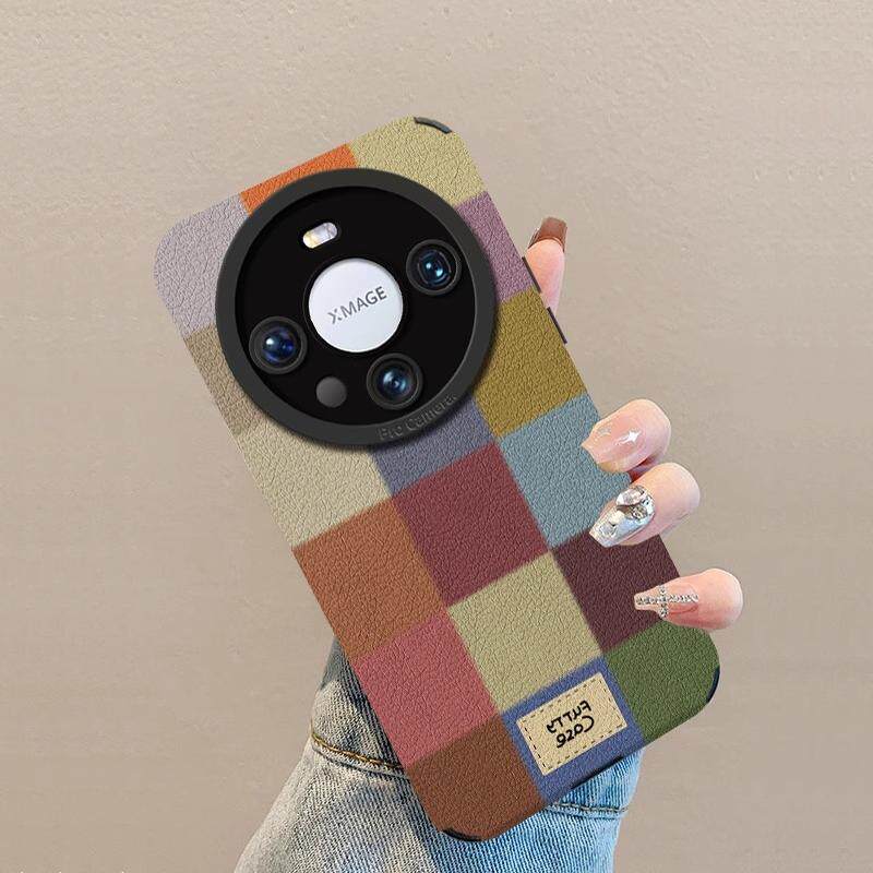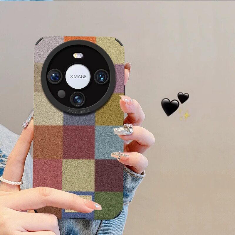 七彩小方格适用华为mate70手机壳荣耀200Pro女nova12小羊皮p70pro新款60防摔Magic6创意50全包硅胶保护套