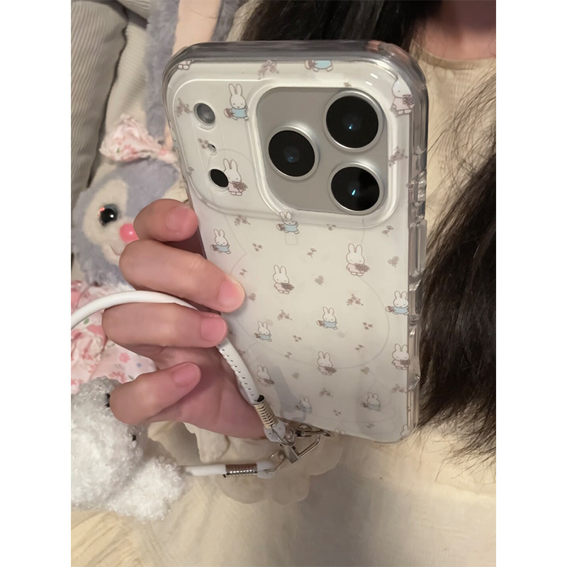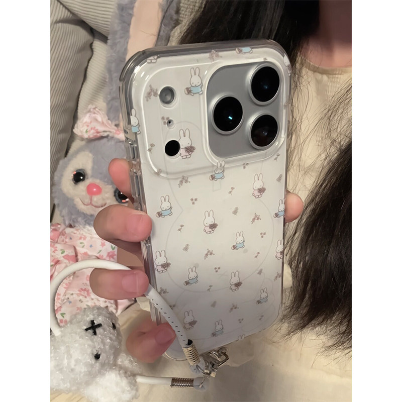 韩系可爱米菲兔带公仔手绳适用苹果17promax手机壳iPhone17女新款16卡通15网红14少女16Pro防摔15pro保护套13