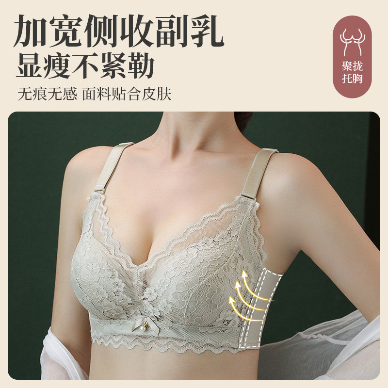 内衣女小胸聚拢收副乳防下垂调整型无钢圈性感蕾丝文胸罩夏季薄款