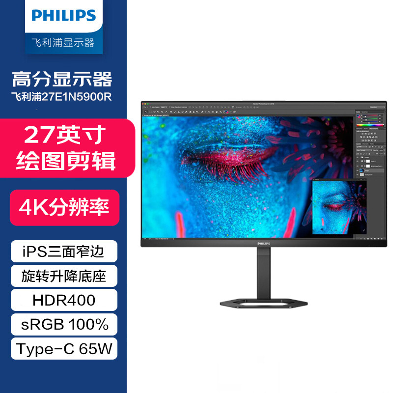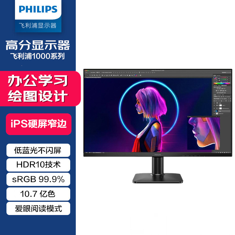 飞利浦27英寸2K/4K超高清显示器广色域ips窄边框设计绘图PS4游戏