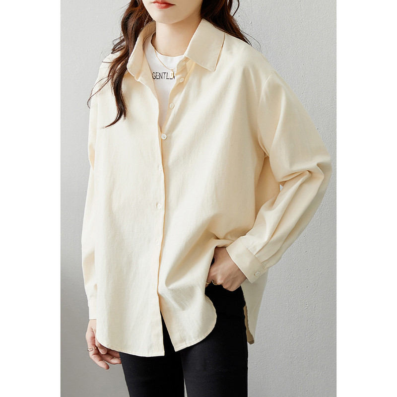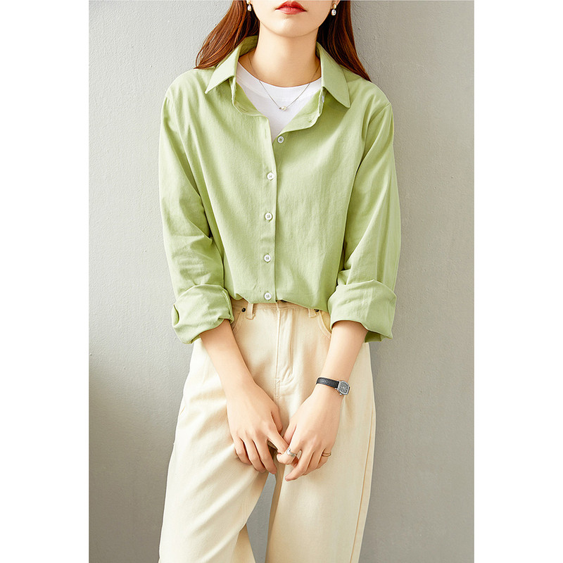 甜美舒适日常通勤纯色ins女款长袖衬衫
