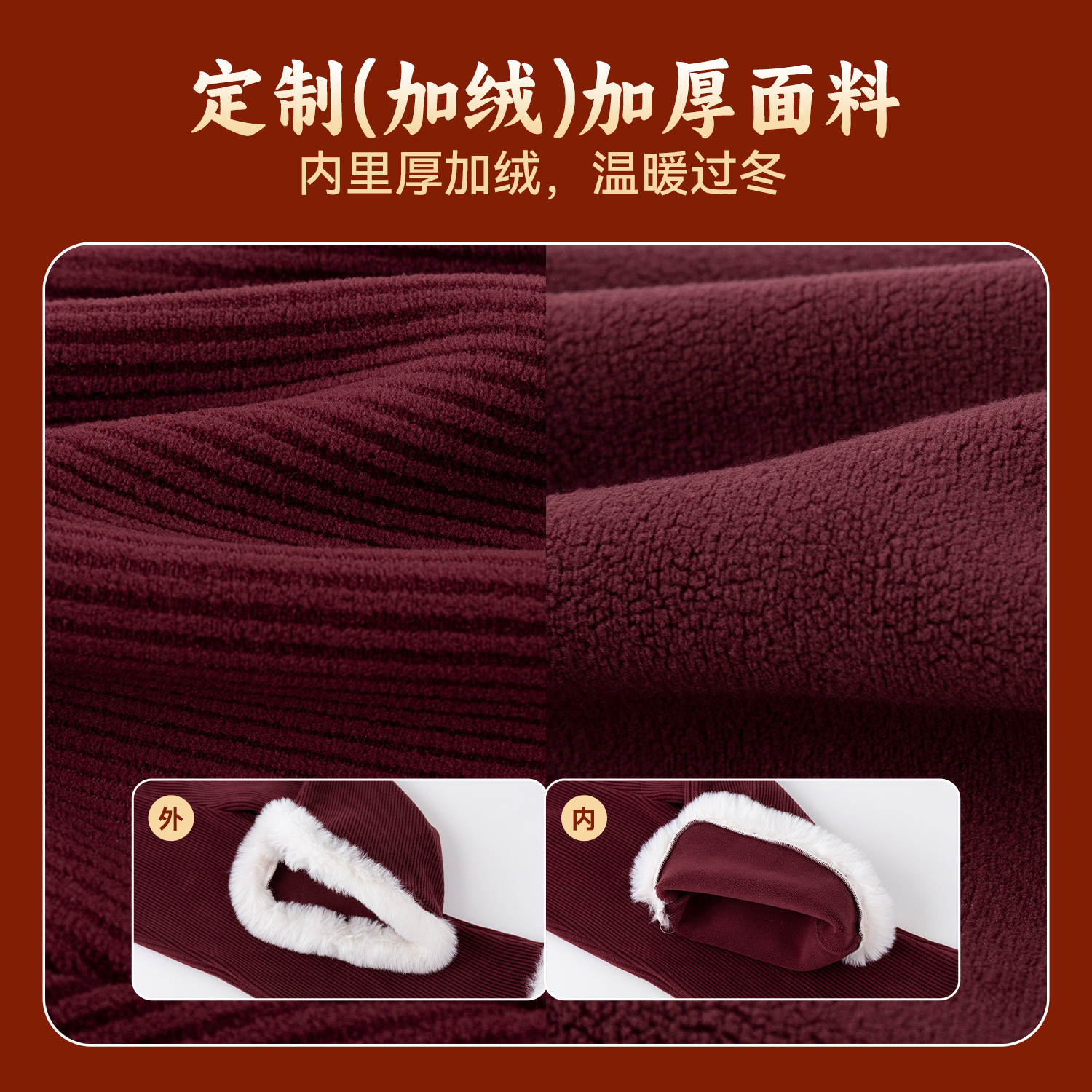 嘟嘟家女童唐装裤子红色冬季加厚女宝喇叭裤女孩长裤喜庆拜年服冬