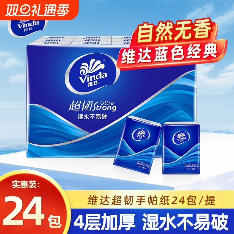 维达超韧手帕纸4层24包经典无香系列迷你小包纸巾便携随身装纸抽