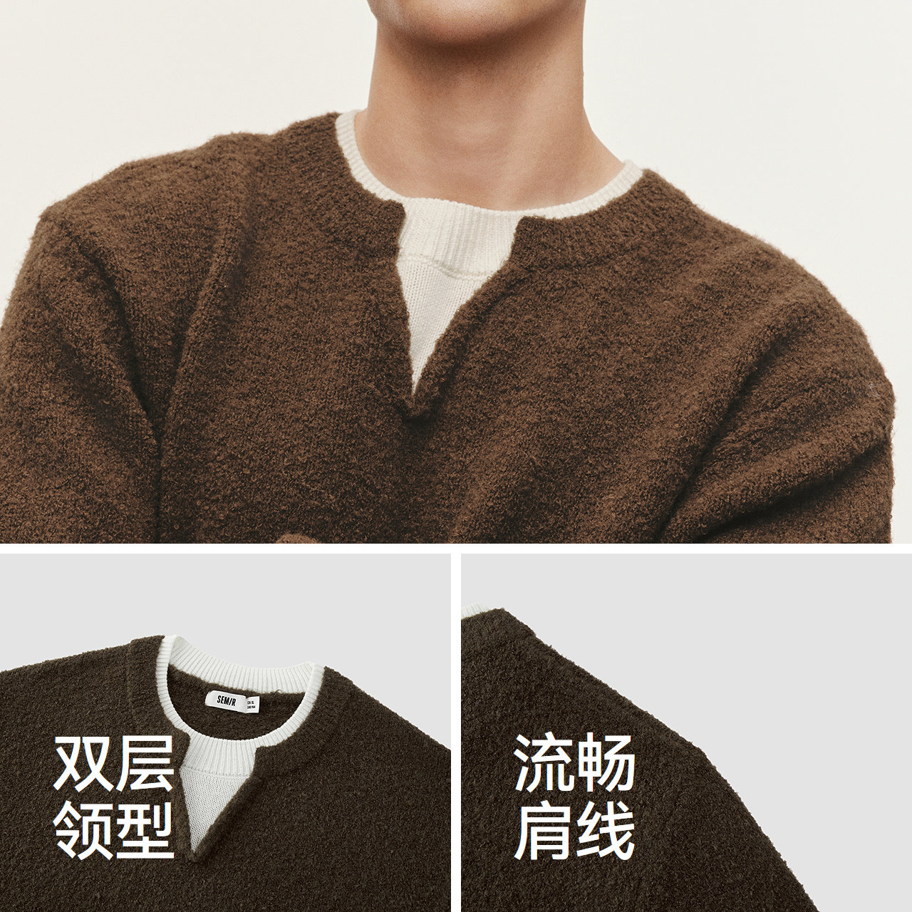 森马毛衫男冬季假两件V领针织衫含羊毛2025新款拼色时尚内搭毛衣