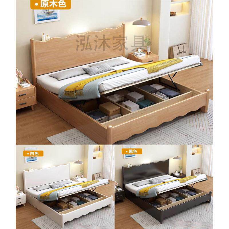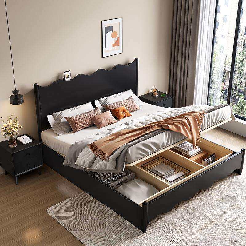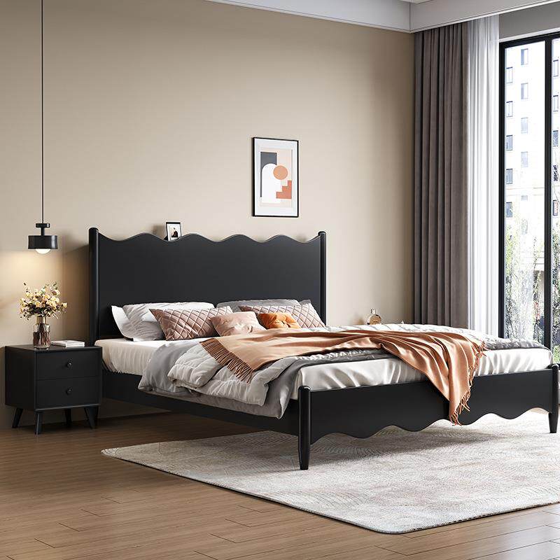 北欧全实木床现代简约黑色床法式复古1.8m双人主卧大床1.5m单人床